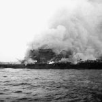 The Lexington had been hit by multiple torpedoes and bombs on May 8, but it was a secondary explosion causing uncontrolled fires that finally warranted the call to abandon ship. The USS Phelps delivered the final torpedoes that sank the crippled Lady Lex, the first aircraft carrier casualty in [American Ed.] history. With other U.S. ships standing by, 2,770 crewmen and officers were rescued, including the captain and his dog Wags, the ships ever-present mascot.