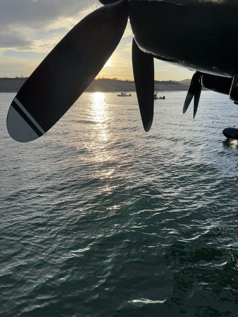 Throughout its journey from Sproat Lake to Lake Pleasant, AZ, the Philippine Mars was escorted, at different times, by several warbirds, including T-6 Texans, a P-51 Mustang, and the Arizona-based PB4Y-2 Privateer. The mighty WWII flying boat received a fitting farewell from fellow warbird operators, honoring its storied legacy.