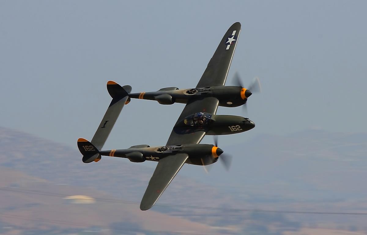 The Planes of Fame Air Museum’s 2013 Air Show in Chino, California, entitled “Lightning Strikes Chino” happened this past weekend and had five flying Lockheed P-38 Lightnings in the air and flying formation, in what has to be the largest assemblage of flying P-38s in decades. According to the show organizers, it’s believed that there are only seven airworthy P-38s in the world, six of which are in the United States and one in Europe, so to have five at an air show is quite a feat, particularly given the vagaries of operating and maintaining these craft.