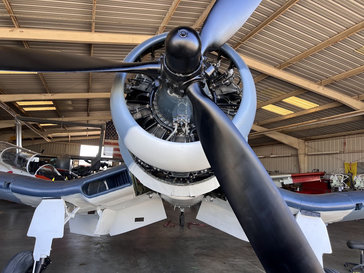 A friendship between the two soon developed, and she would interview Purdy about his wartime service with Marine Fighter Squadron 441 (VMF-441) during WWII. During their time together, Purdy showed Spry his logbook, which happened to include an entry for the Planes of Fame’s Corsair, Bureau Number 17799! Soon, they learned that Purdy’s wingman, Major John Tashjian, was still alive in California. Tashjian flew out to Purdy’s home near Columbia, Missouri, to meet his old wingman for the first time since WWII, and as it turned out, Tashjian’s logbook also confirmed that he had flown 17799 during his time with VMF-441, confirming the museum’s long-time suspicions that 17799 was a combat veteran, which naturally created quite the buzz around the museum!