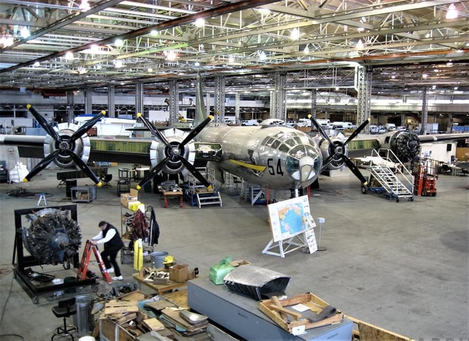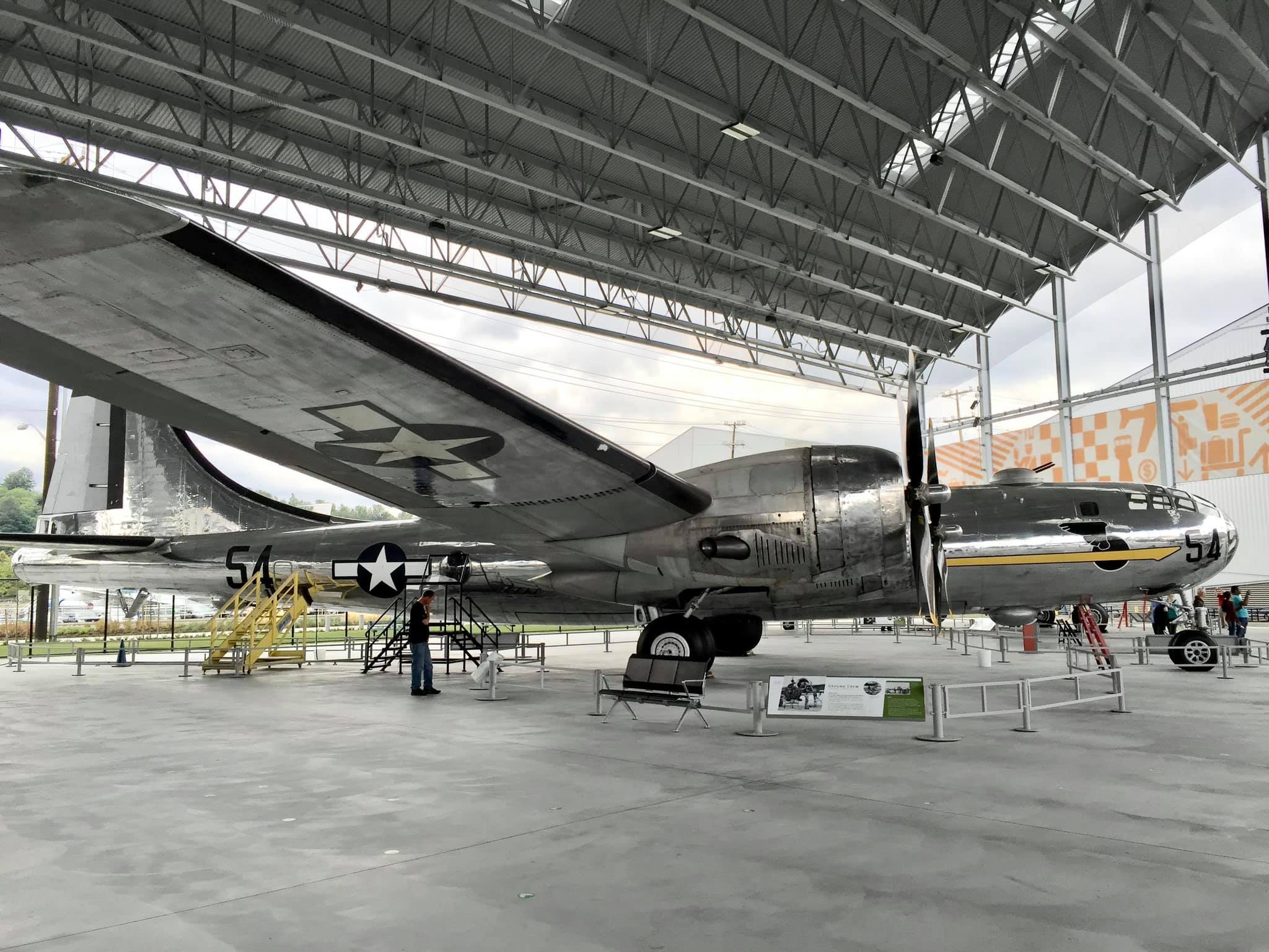 In 1995, the National Museum of the U.S. Air Force placed the aircraft on loan to the Museum of Flight (MOF) in Seattle, Washington. The bomber went through extensive restoration effort and is now on static display in the MOF’s Aviation Pavillion. The museum’s restoration was pretty comprehensive, including making each of the gun turrets operational, albeit with de-militarized weapons. However, as of this writing, the aircraft is missing starter spline adaptors on its engines, with the 36 wire ignition spark plug wires literally cut, nor does the aircraft have fuel cells installed. The bomb bay doors are not original and open but are not actuated. The National Museum of the United States Air Force does not allow its aircraft to be flown, so returning the B-29 to flight is not up to the discretion of the MOF.