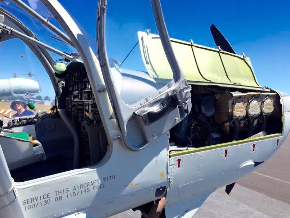 View of the Piaggio-built Lycoming O-480 inside Aermacchi AM.3CM Bosbok (Bush-buck), N949CM at McNary Field, Salem, Oregon. (Randy Malmstrom)