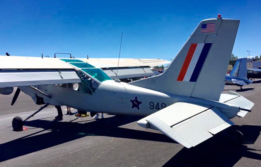 Aermacchi AM.3CM Bosbok (Bush-buck) N949CM equipped with reconnaissance pod at McNary Field, Salem, Oregon. (Randy Malmstrom)