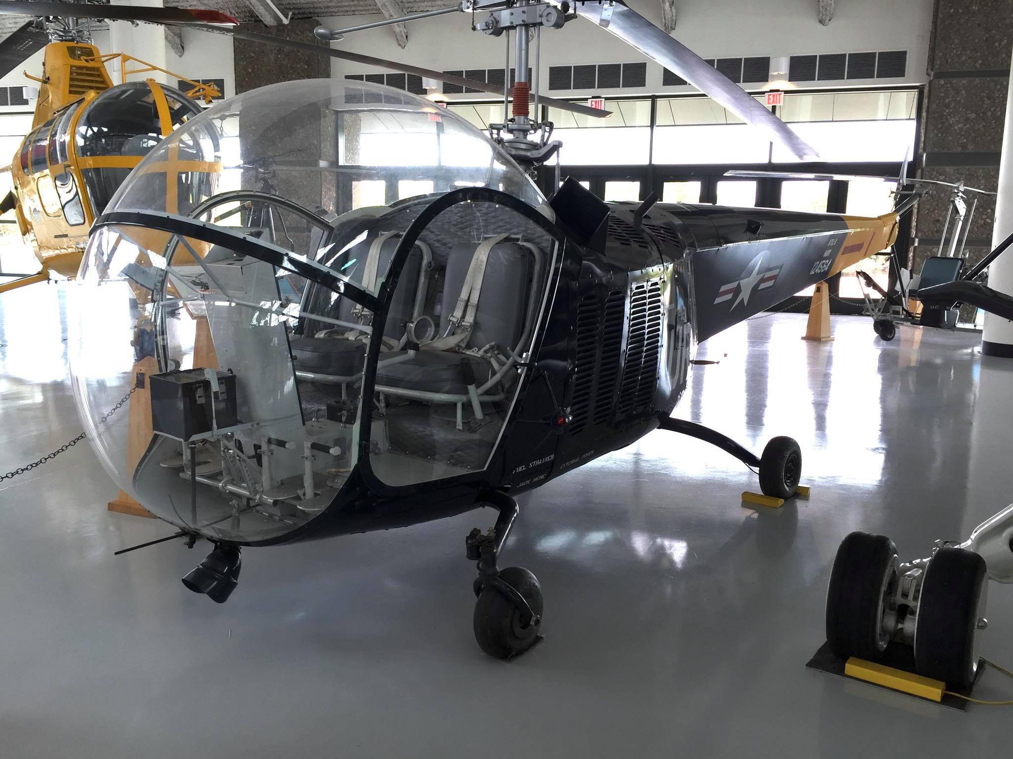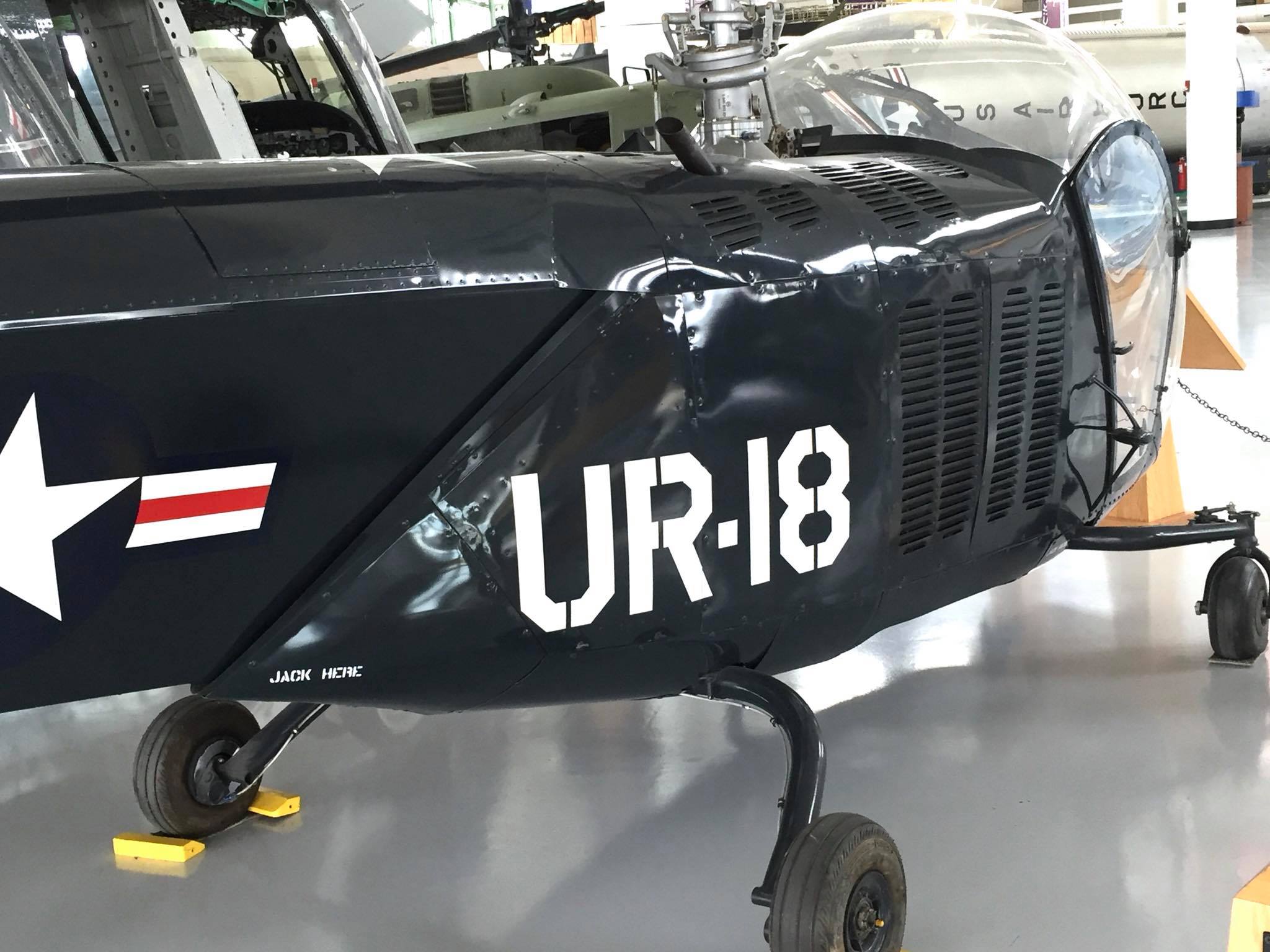 VMO-6 used the two HTL-3 and (a total of) three HTL-4 aircraft for evacuation, observation and liaison missions; however, the HTL-3’s were not considered satisfactory for the rugged hills of Korea due to their landing gear (as opposed to skids) and solid tail boom configuration (squadron pilots reportedly considered them underpowered as well). According to museum records (although I have not been able to confirm), on September 12, 1956, this aircraft was stricken from the records and sent to Glendale Community College in California where for the next 37 years it served as pilot training aircraft; and then in 1993, it was acquired by collector Jack Lenhardt of Hubbard, Oregon who, over the next 3 years, put it through extensive restoration including giving it the VMO-6 markings it carried while operating in Korea. Evergreen International Aviation founder Del Smith (for whom my dad worked for a time) acquired the aircraft in 2003. My photos of it are on display at the Evergreen Aviation & Space Museum in McMinnville, Oregon.