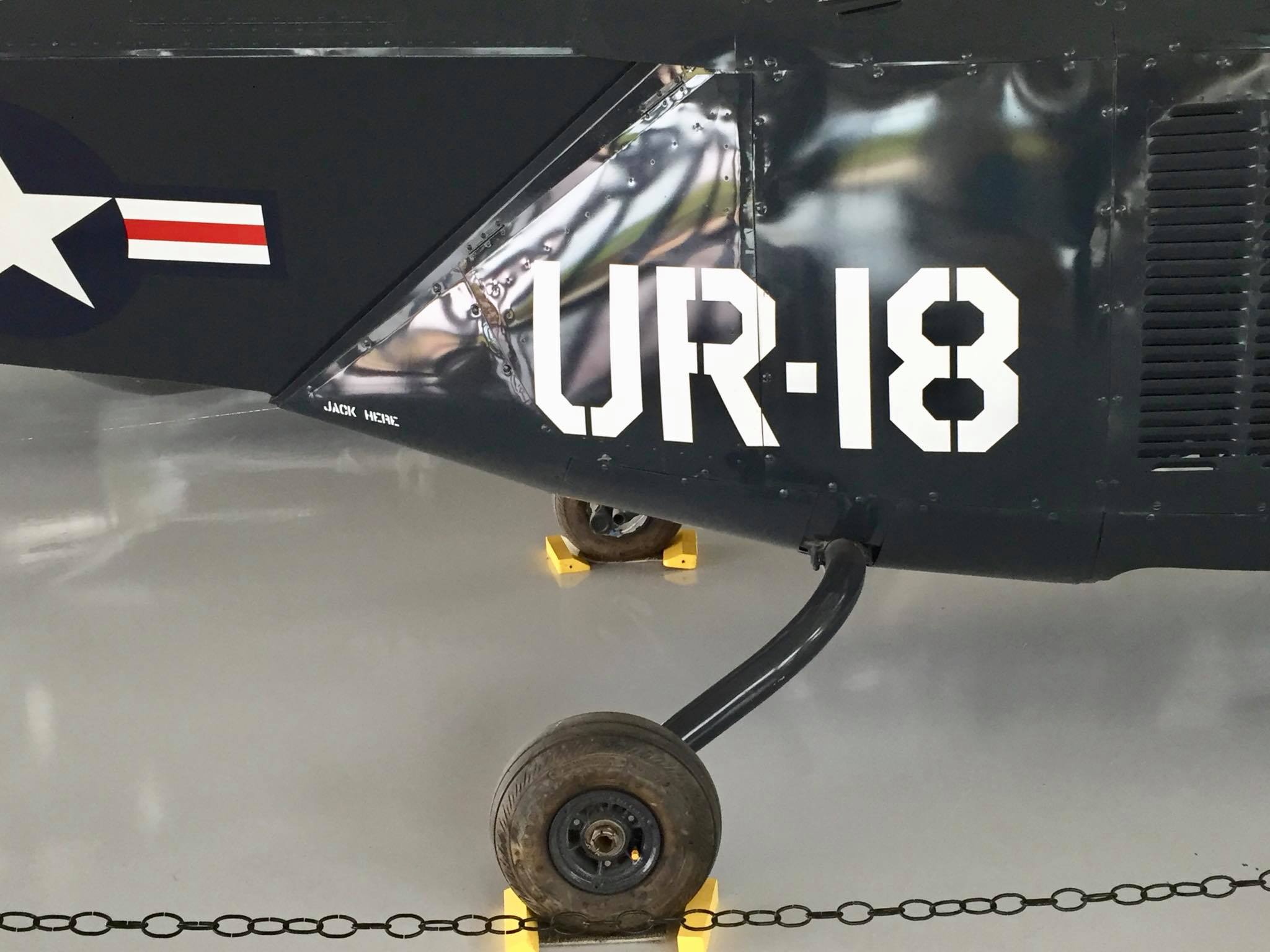 Bell HTL-3, 124564/UR-18, s/n 168. From what I have been able to determine, this particular aircraft was one of nine HTL-3 aircraft produced by Bell Helicopter Company for the U.S. Navy, and it was completed on April 4, 1950. It served with Navy Helicopter Utility Squadron 2 (HU-2), the “Fleet Angels” based at NAS Lakehurst (New Jersey) until it was put on loan to the U.S. Marine Corps in December of 1950. It was shipped to Korea, and on December 28, 1950, it was one of two HTL-3 and one HTL-4 aircraft assigned to Marine Observation Squadron 6 (VMO-6) near Pusan (and later Pohang and elsewhere). VMO-6 is considered to be the first U.S. Marine Corps helicopter squadron to introduce the helicopter into actual combat; the squadron had departed for combat operations in Korea on July 14, 1950, aboard the USS Badoeng Strait (CVE-116).