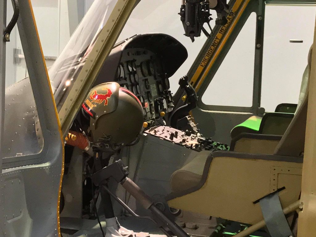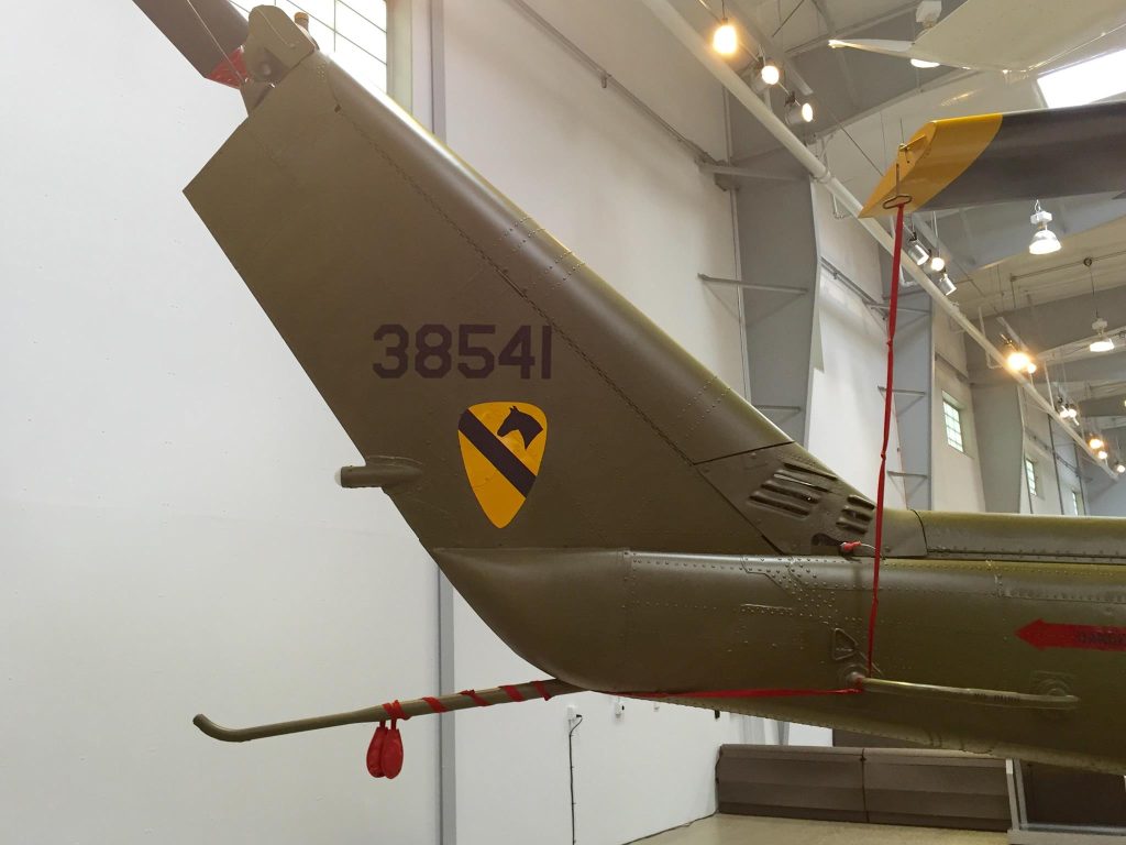 The restoration work on the aircraft was done by Patrick Rodgers and the staff of Aircraft Restoration Services in Murrieta, California (associated with the Wings & Rotors Museum). It is painted with the markings of the 1st Cavalry Division, 9th Cavalry Regiment, A Troop (A-1/9), with the “Scorpions” such as found on the gunship of gunship platoon leader Captain Bernie L. Young with the yellow “Delta” tactical designator for A Troop on the door. My understanding is that certain components are timed-out on this aircraft and, coupled with the possibility of intense maintenance needs (i.e. “four hours of maintenance for every hour of flight”), it will likely not fly.