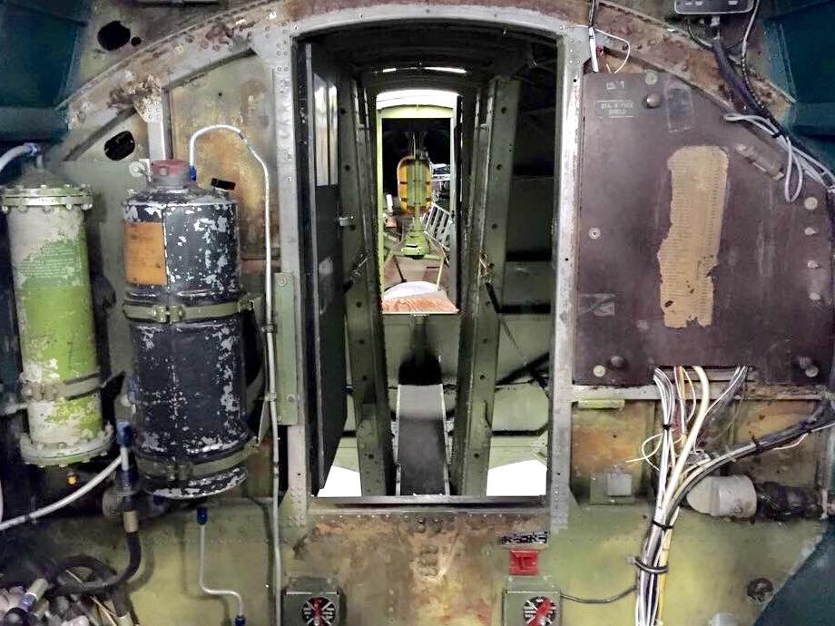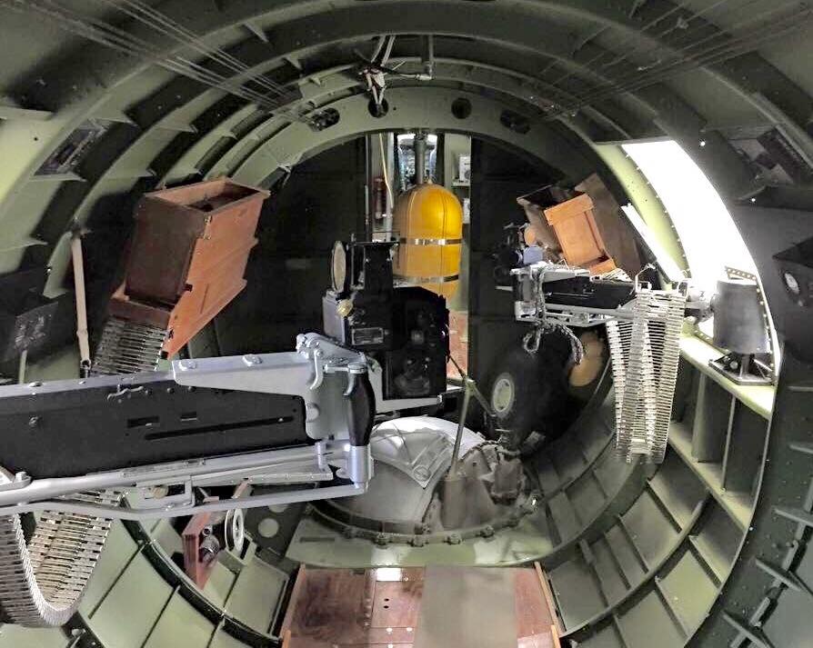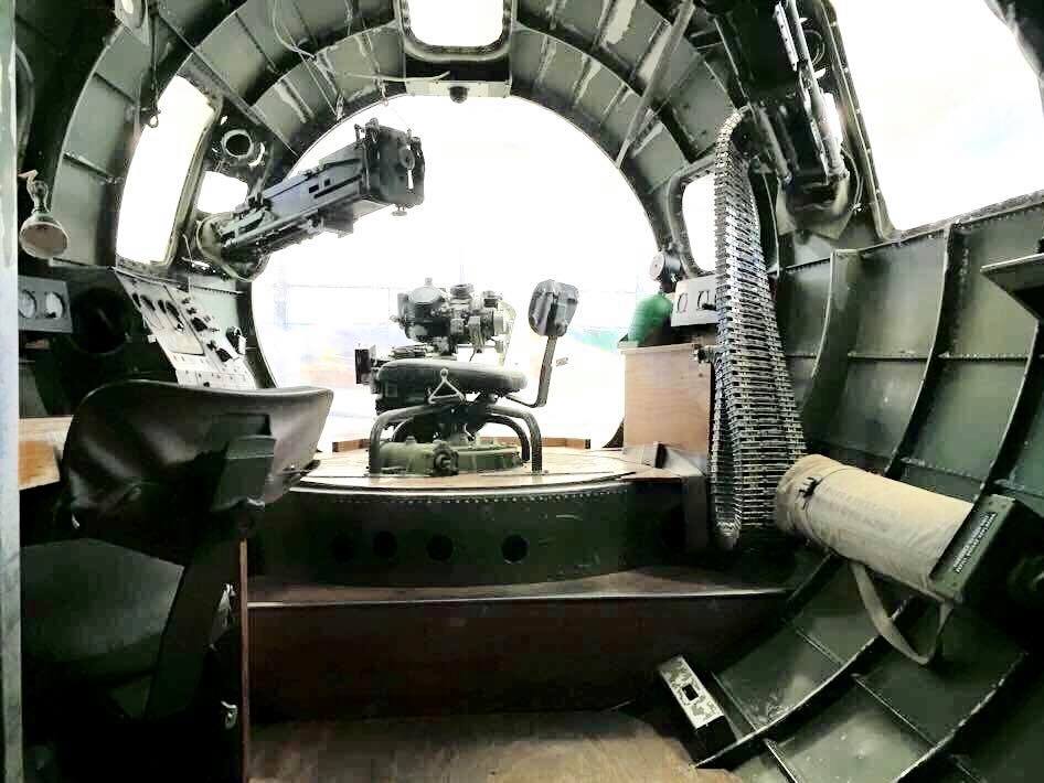 This particular aircraft was built by Vega Aircraft Corporation, a division of Lockheed Aircraft Company, in Burbank, CA (aka Lockheed/Vega) and delivered to the U.S. Army Air Forces on October 16, 1944 as a G-20-VE model s/n 44-8643, Constr. No. 7943 (note the “F” type glasshouse nose and earlier stinger tail turret. Shortly thereafter, it was sent to the United Airlines Modification Center in Cheyenne, Wyoming, where it was modified as a Pathfinder with H2X ground-mapping radar, code-named “Mickey” (as far as I know, this is the last remaining H2X-fitted B-17s left in existence).