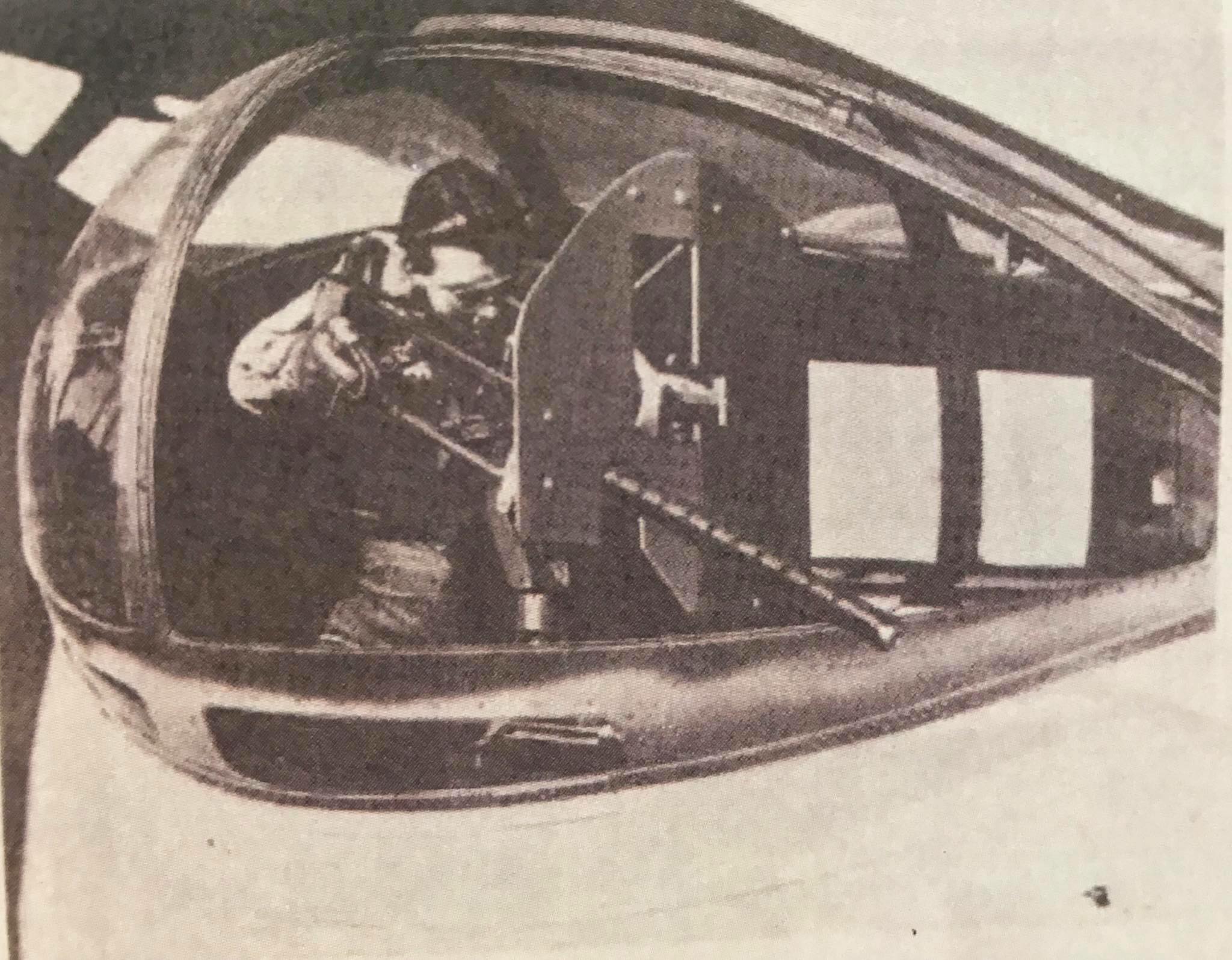 Armament varied due to its many uses, including patrol, reconnaissance, SAR (search and rescue), night patrol, anti-submarine patrol, and attack craft, and its extensive international use. The 5A versions were typically armed with one or two .30 or .50 caliber machine guns in the nose, fired by the bombardier (later versions had an “eyeball” type gun turret seen on the PBY-6, some were modified to have a “clipper” style bow without a turret), one .50 cal. machine gun in each of the port and starboard Plexiglas hinged cupolas (with 956 rounds of ammunition for the two guns), and a .30 cal. machine gun in a rear-facing ventral port tunnel at the bottom of the hull. In addition, provisions were made to mount two blisters equipped with ball and socket mounts for a .30 cal. gun in the tunnel gun compartment. A 3/4-inch firing guard was attached to the inside of the hull just below each blister to prevent firing into the tail section (see B&W photo).