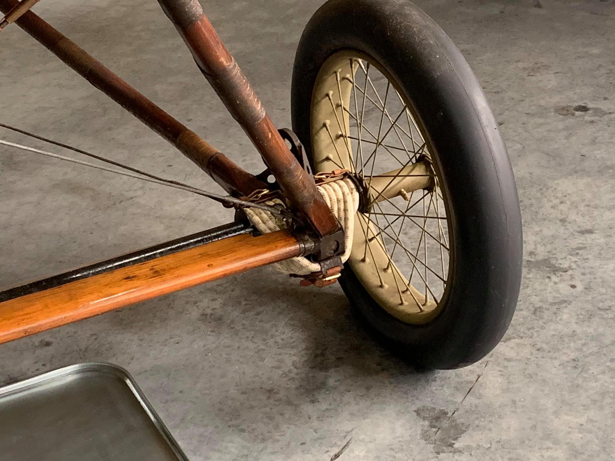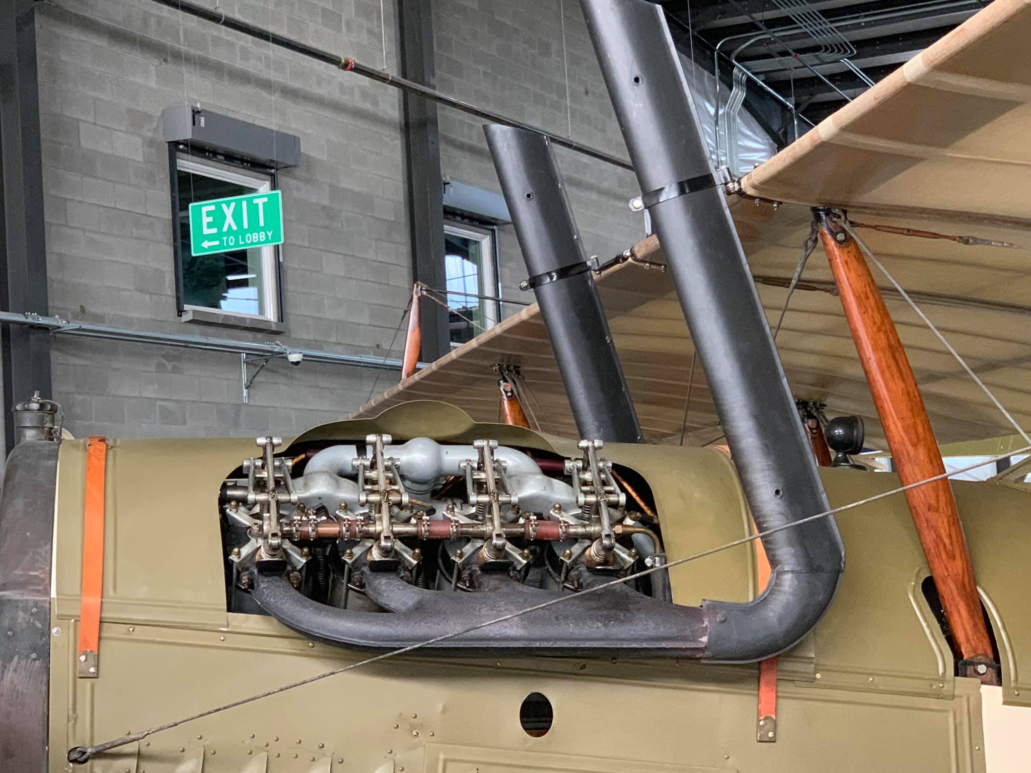 It had been dismantled in the 1920s and stored in a barn in Ohio since then. The boxes of parts were largely complete, and as a result, the rebuilt airframe is made up of more than 95% original parts – the turnbuckles (around 300 of them) are original. The tires, bungee cord suspension, control wires, and fabric were replaced. Jenny’s were originally covered with either Grade A Cotton or Irish linen at the time they were designed. This aircraft is covered with a 50 to 60-year-old stock of Irish linen, part of a stock of aircraft parts that had been owned by the grandfather of Jeremy Young, WAAAM’s first director, and the dope finish was applied by hand with horsehair brushes as was the practice (Dacron is the standard modern replacement as far as I know). Restoration cost $400,000 USD and took two years and three months, and it first flew again with its Curtiss OX-5 engine on May 17, 2008.