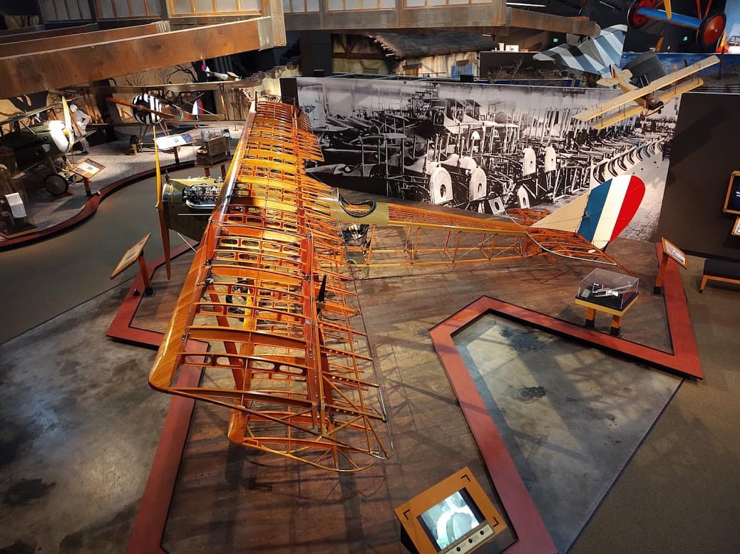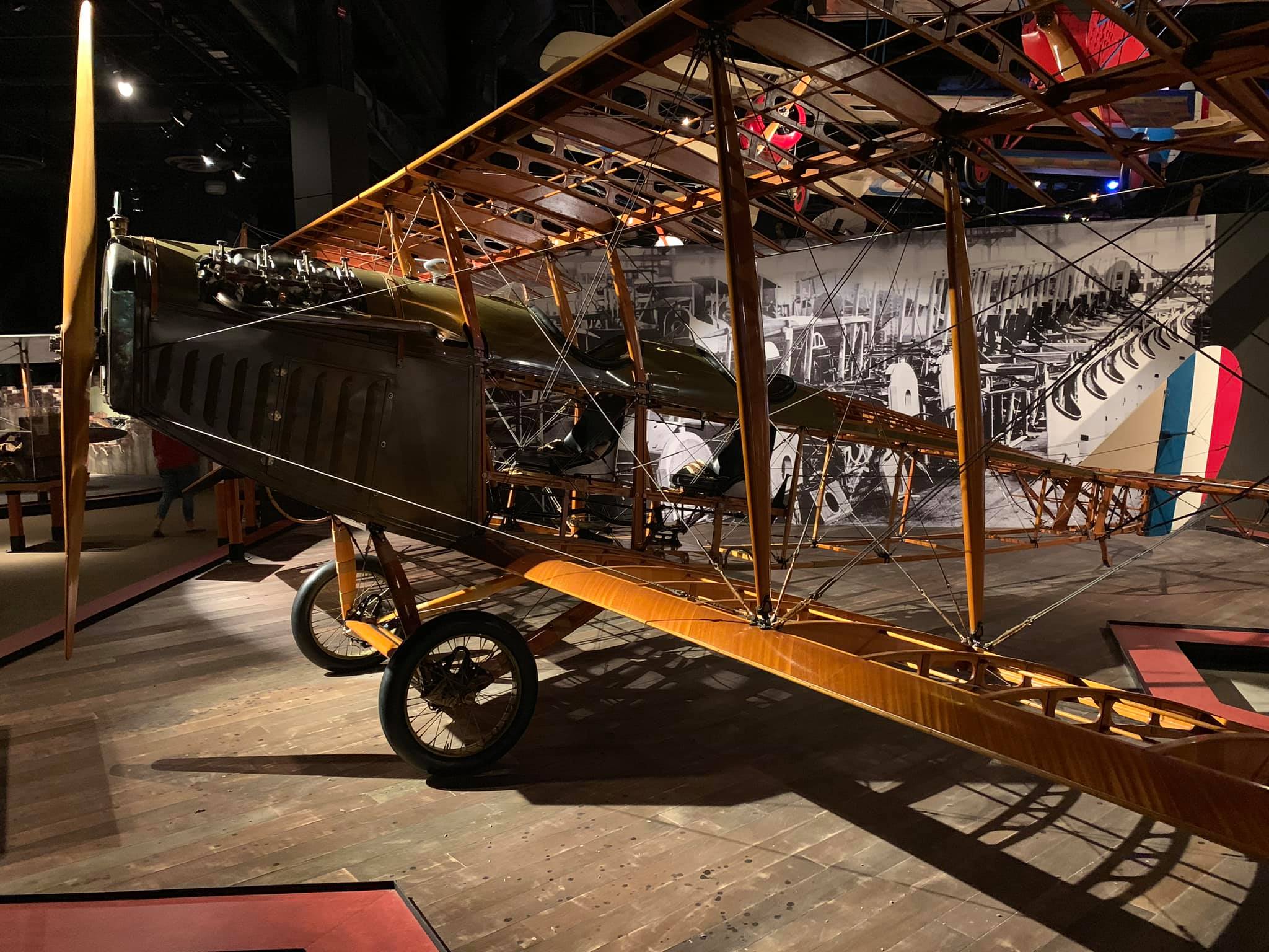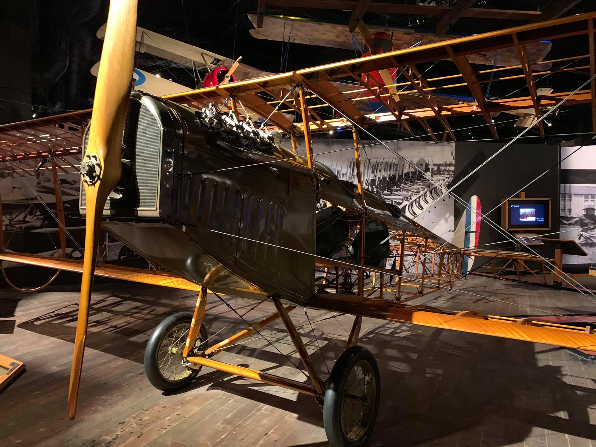 The Jenny design was commissioned by Glenn Curtiss, who hired experienced European designer Benjamin Douglas Thomas, and was built by Curtiss Aeroplane Company as part of the company’s “JN” series of biplanes — the “Jenny” nickname derived from the “JN” series. It was the first mass-produced American aircraft, with over 6,000 built. The ailerons were originally controlled by a shoulder yoke (with the pilot leaning left and right) in the aft cockpit, but were replaced by a wheel, stick, or yoke by this D model. While generally not armed, some advanced trainers had machine guns and bombs.