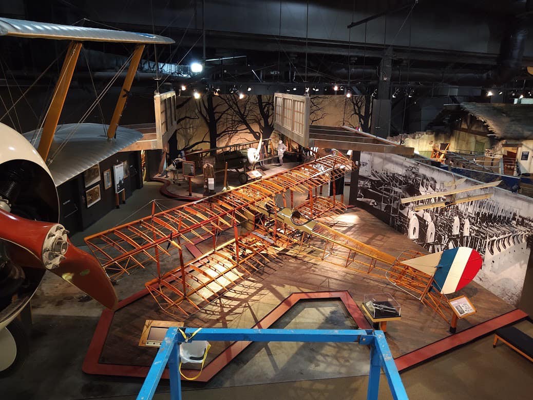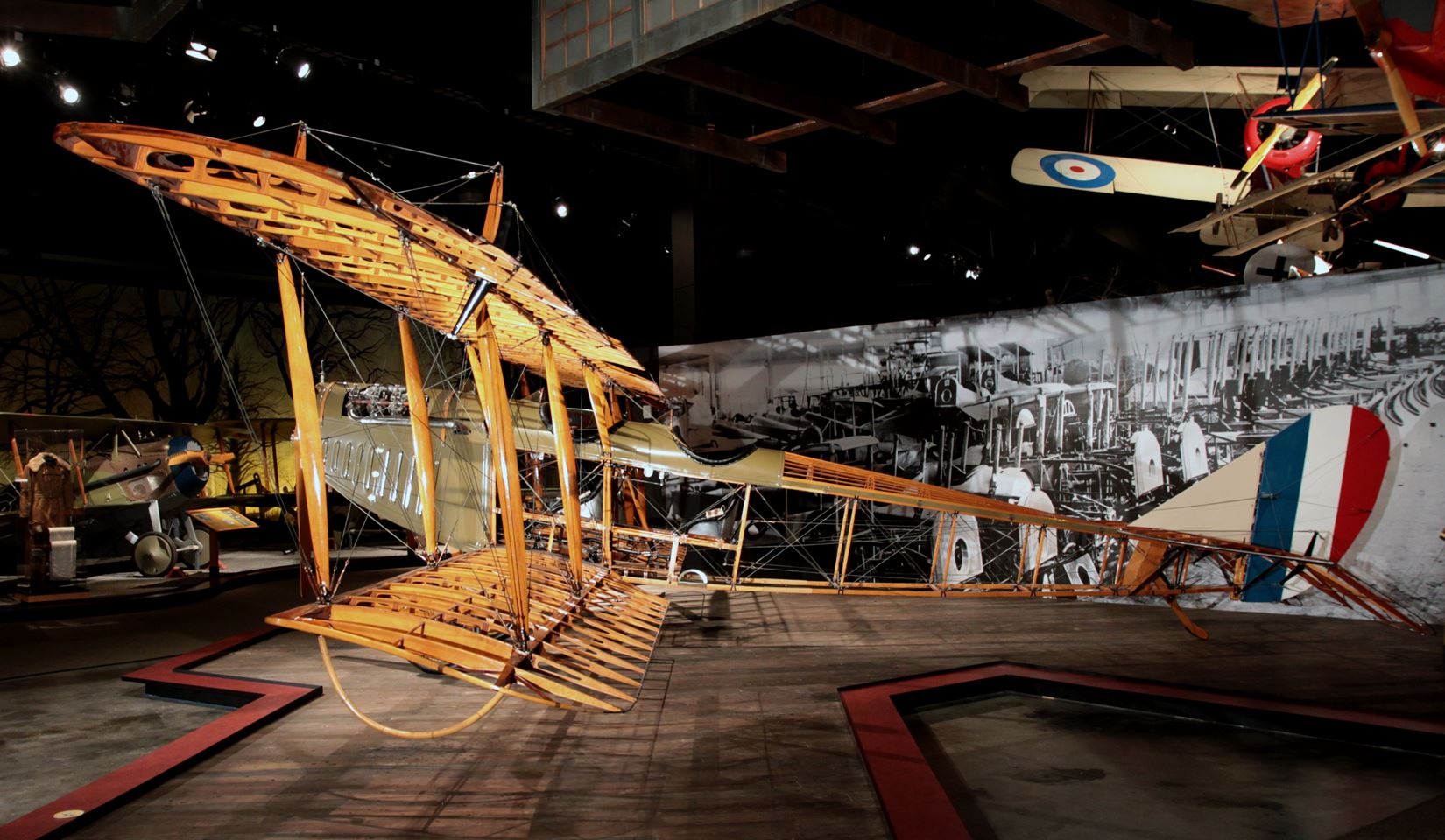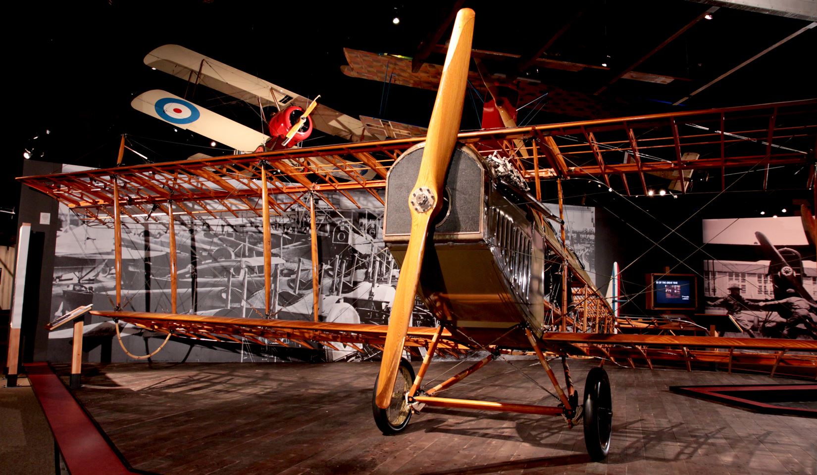 The Jenny design was commissioned by Glenn Curtiss, who hired experienced European designer Benjamin Douglas Thomas, and was built by Curtiss Aeroplane Company as part of the company’s “JN” series of biplanes — the “Jenny” nickname derived from the “JN” series. It was the first mass-produced American aircraft, with over 6,000 built. The ailerons were originally controlled by a shoulder yoke (with the pilot leaning left and right) in the aft cockpit, but were replaced by a wheel, stick, or yoke by this D model. While generally not armed, some advanced trainers had machine guns and bombs.