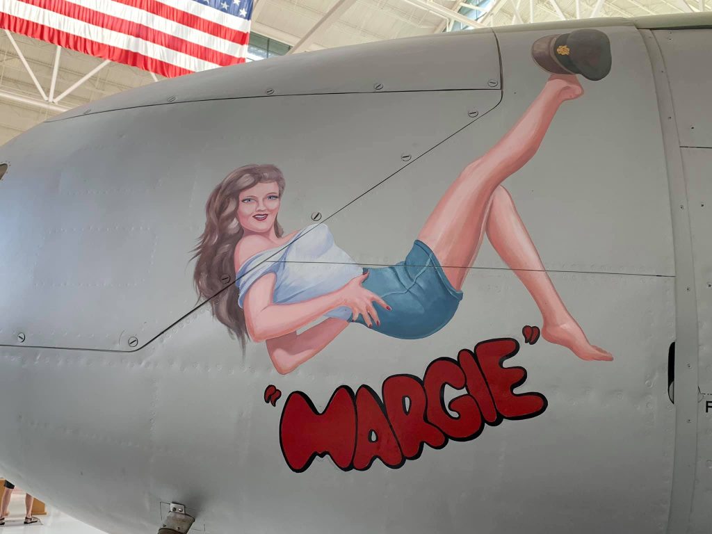 By the end of WWII the unit was based at Beaumont-sue-Oise (A-60) Airfield, Normandy, France, and while there, the group fully converted from the Martin B-26 to the A-26 Invader in the spring of 1945; and the crew of the original Margie carried over the name and letter identifier to their A-26B. The letters “RG” identify it as part of the 552nd, and the “L” as the 12th A-26 assigned to the unit (the stenciling shows the original serial number of this airframe).
