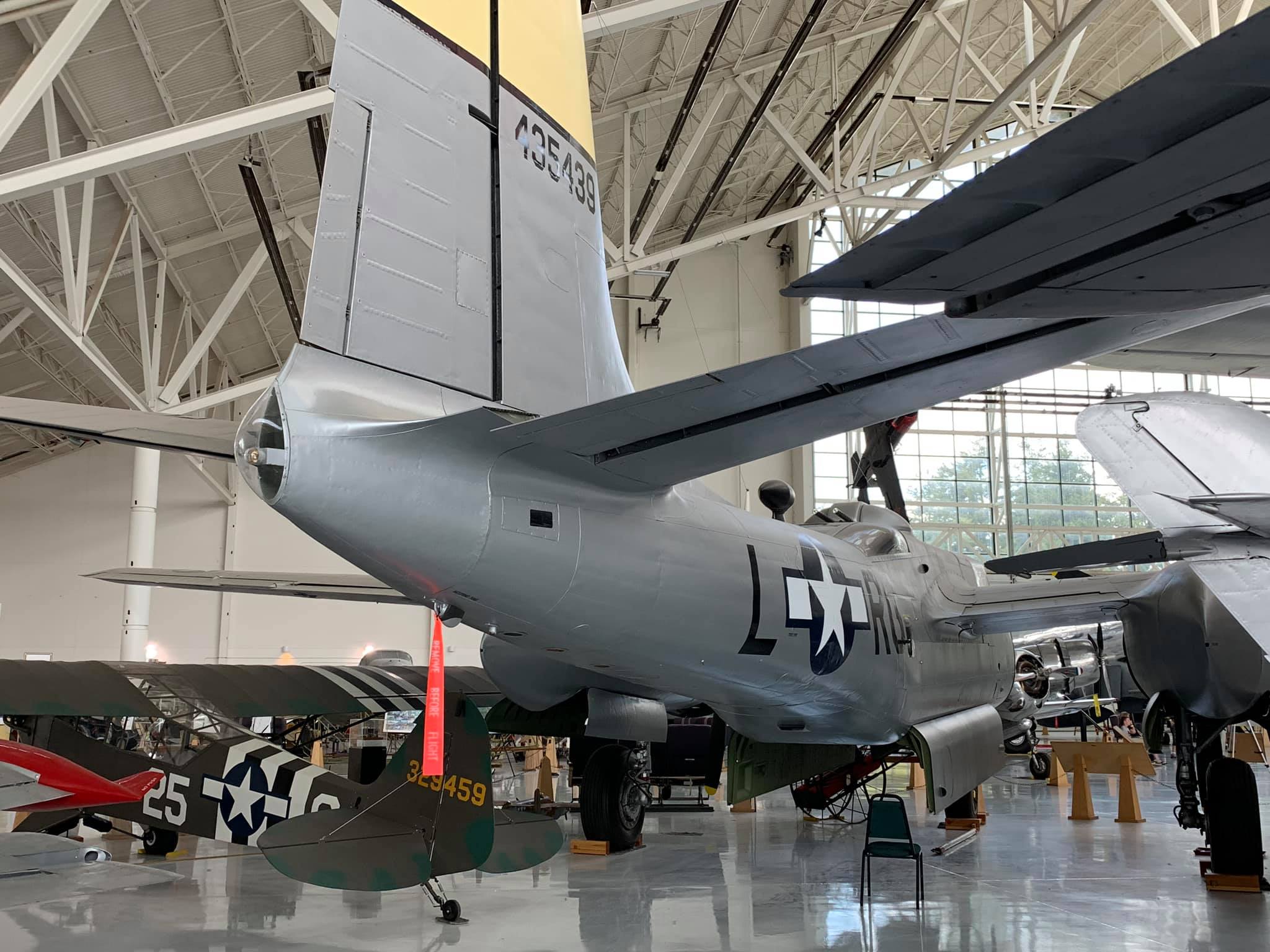 Douglas A-26C-35-DT (A-26B) Invader, s/n 44-35439. This particular aircraft was the 742nd aircraft built at the Douglas Aircraft plant in Tulsa, Oklahoma (hence the “DT” designation), and delivered to the U.S. Army Air Forces (USAAF) as an A-26C in the spring of 1945 but did not see action with the USAAF. It was later sent to France for use in its actions during the Indochina War (re-designated a B-26B) by the Armée de l’Air. It was stricken from the record in 1954.