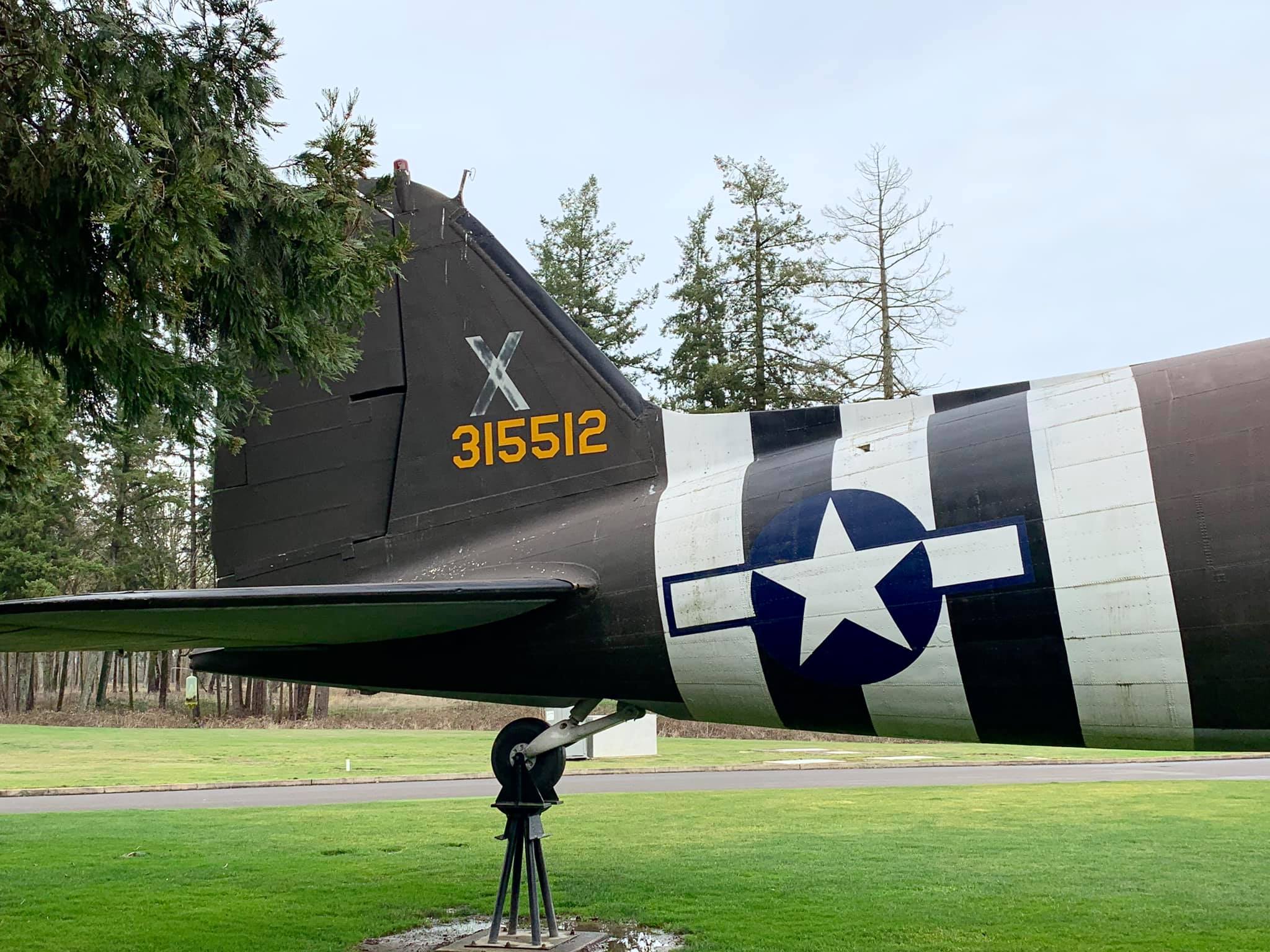 Tail of Douglas C-47A Skytrain 43-15512 on outdoor display at the Evergreen Aviation and Space Museum. (Randy Malmstrom)