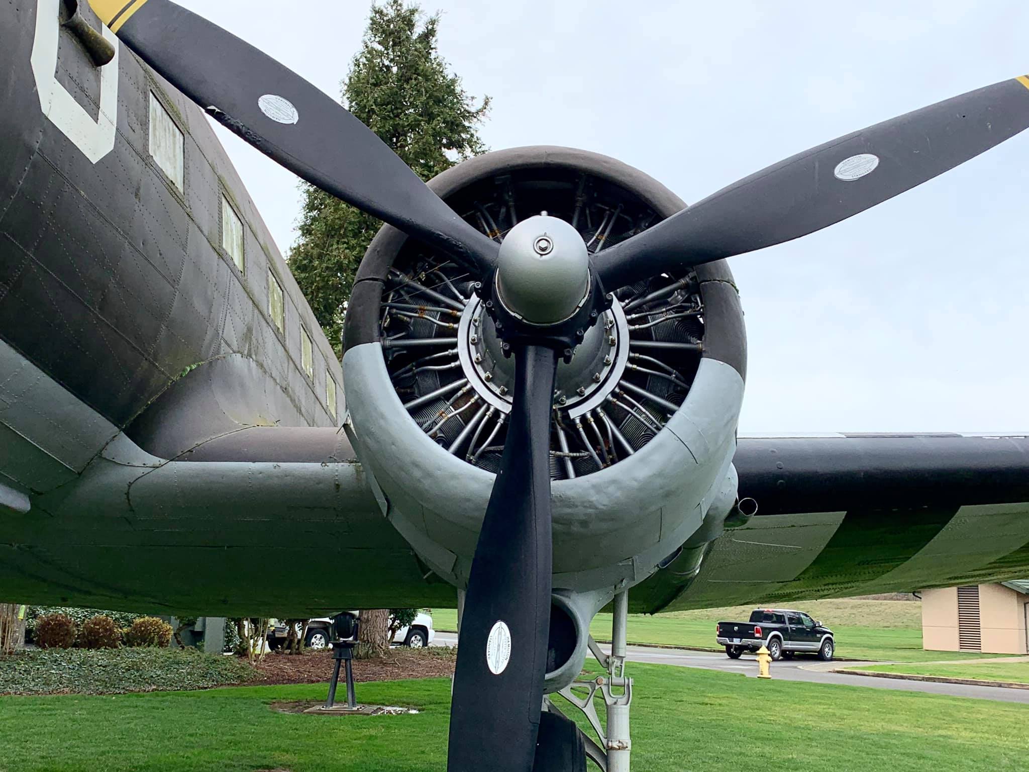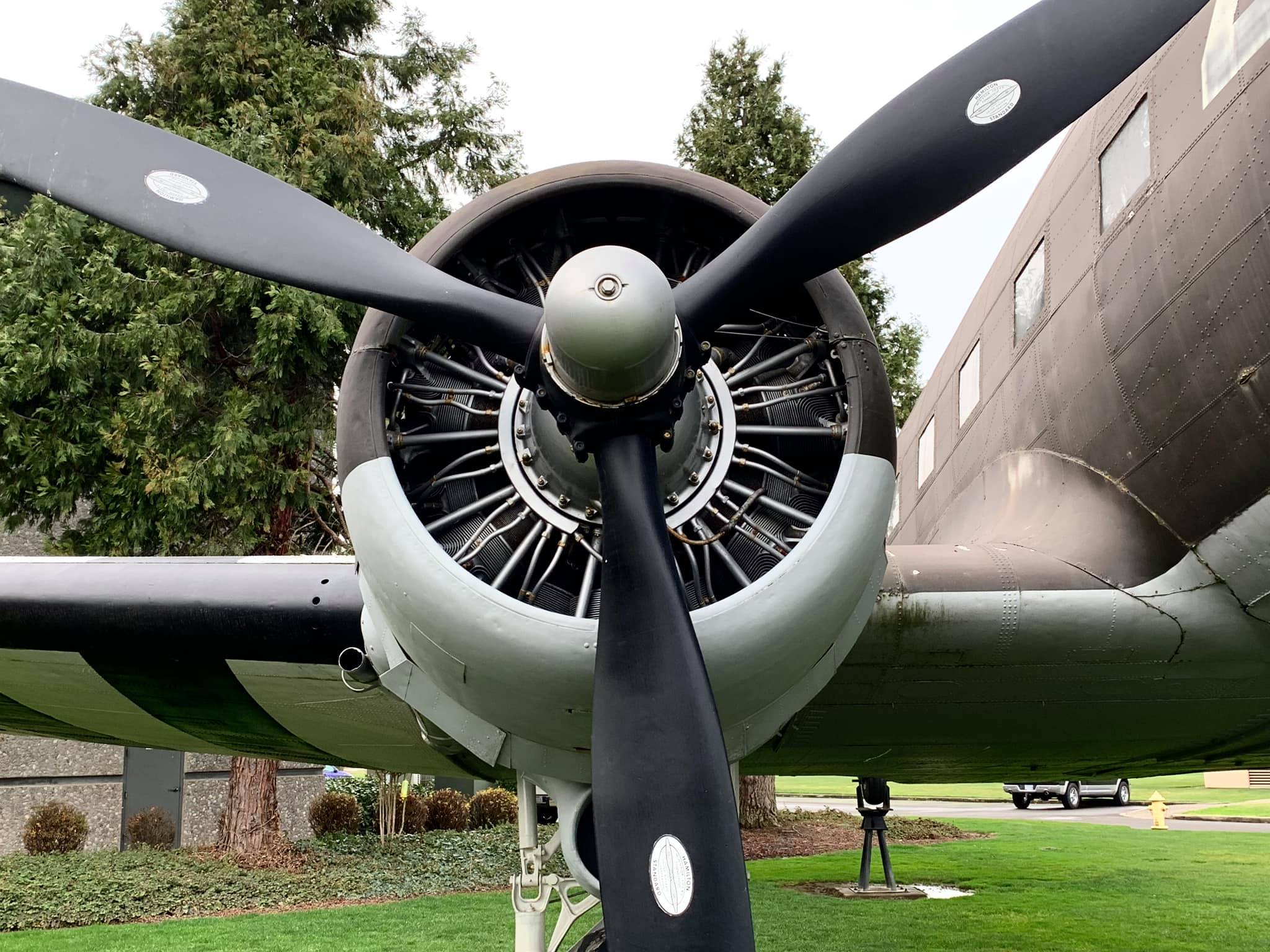 Detail of the nose of Douglas C-47A Skytrain 43-15512 on outdoor display at the Evergreen Aviation and Space Museum. (Randy Malmstrom)