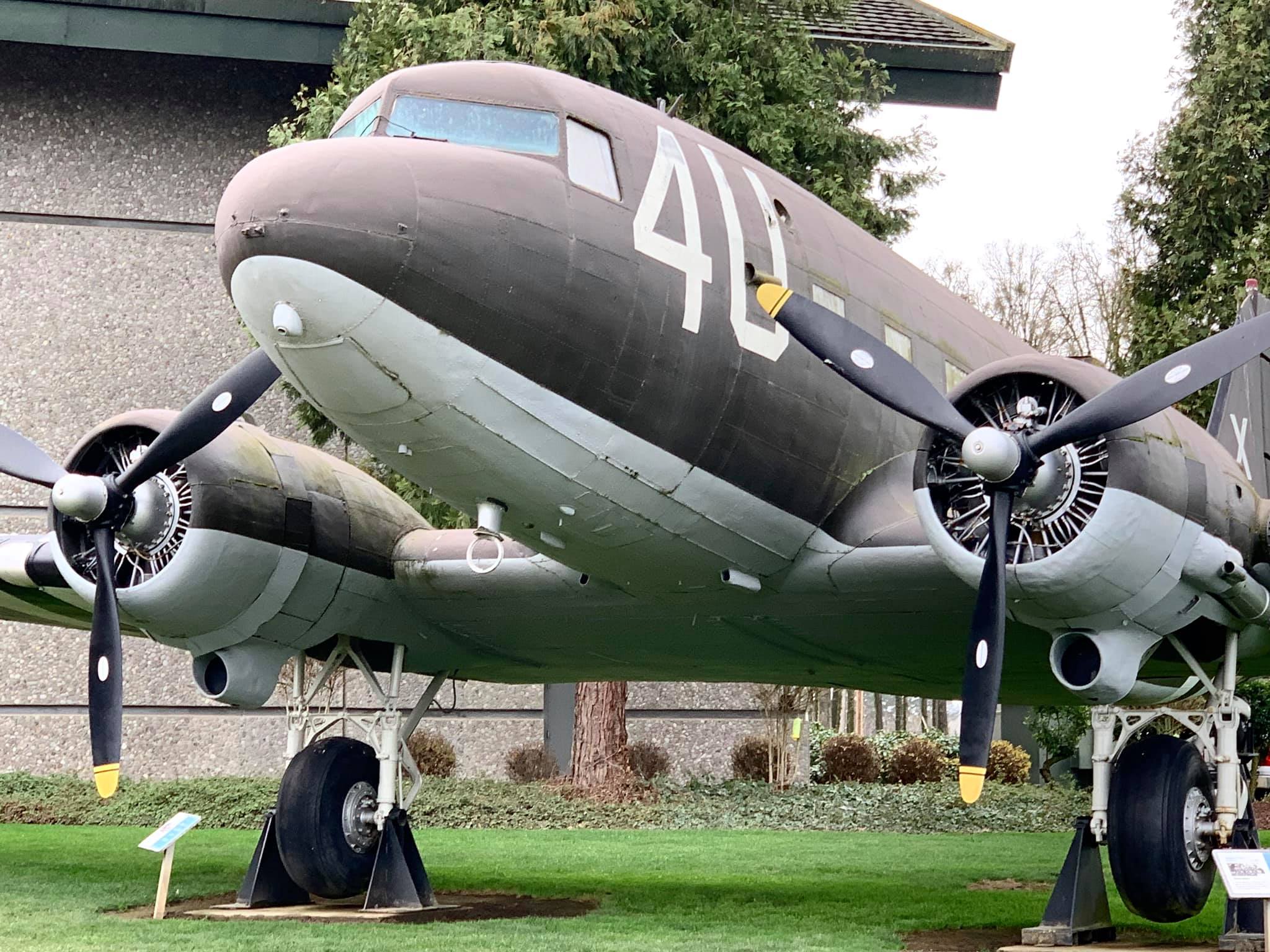 Douglas C-47A Skytrain 43-15512 displayed outdoors at the Evergreen Aviation and Space Museum. (Randy Malmstrom)