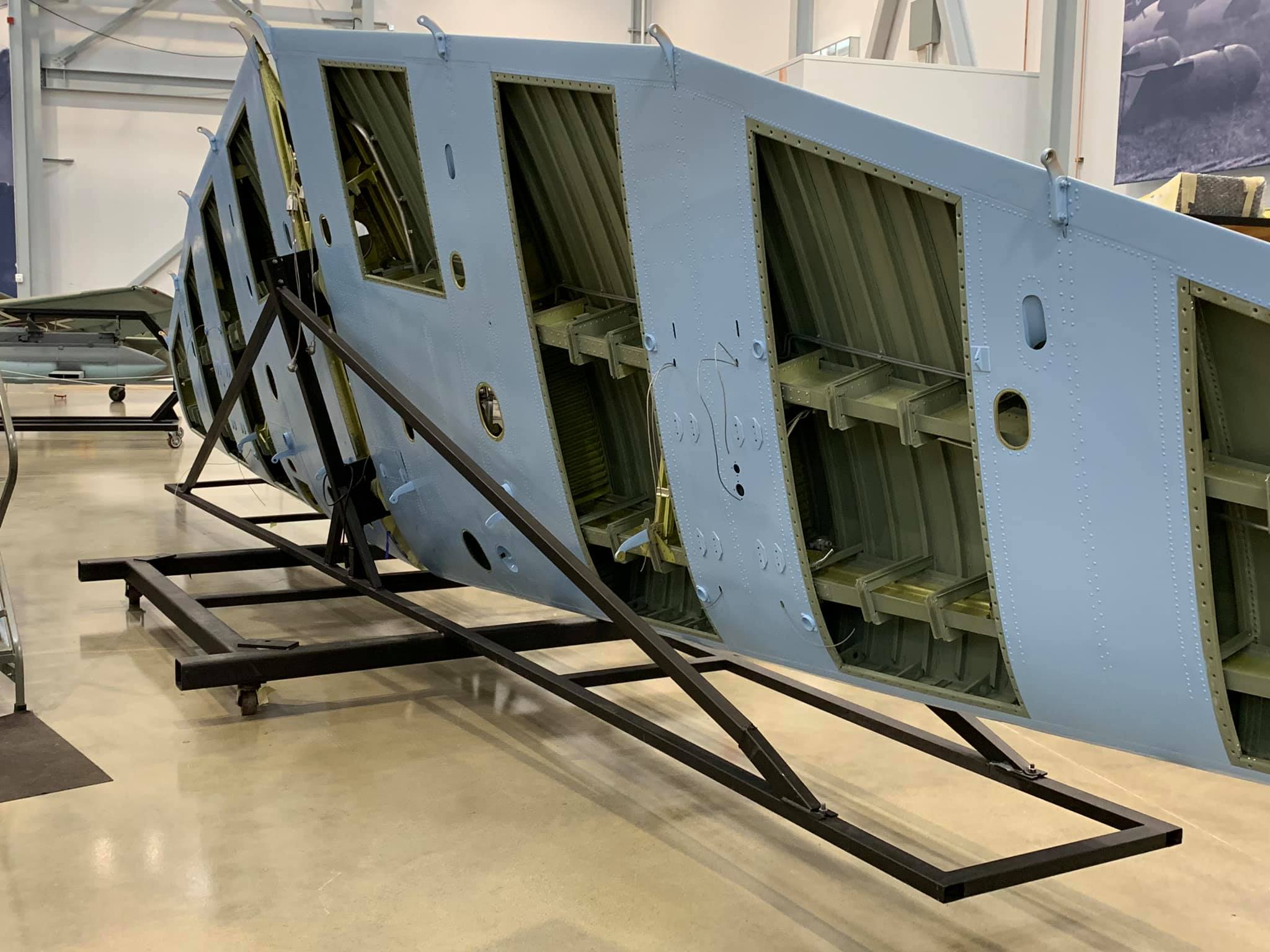 Various wrecks make up this rebuild: Ju-87 R-4 WkNr. 6234 and Ju-87R-2 variants WkNr. 5709 and WkNr. 857509, as well as literally pallet-loads of individual parts, airframes, wings, sections in general, and 10 Junkers Jumo 211D engines from all over were acquired to help assemble one aircraft and one running engine.