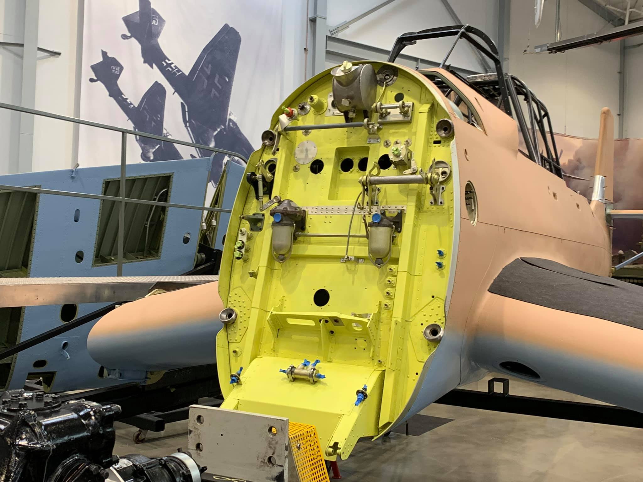 It is on display during the rest of the rebuild and will be made airworthy and as such, should be the only airworthy Stuka in the world [Editor’s note: in December 2023 the American Heritage Museum announced the airworthy restoration of a Ju-87D-5, as previously reported by Vintage Aviation News]. I have seen that by the D-3 variant, the Jericho-Trompetes had been omitted and I understand this aircraft will not be fitted with any. I understand it will be fitted with the type of autopilot described above but that it will be deactivated, and it will have wing fuel drop tanks. It has a Junkers Jumo 211 D engine and will be flown by Steve Hinton.