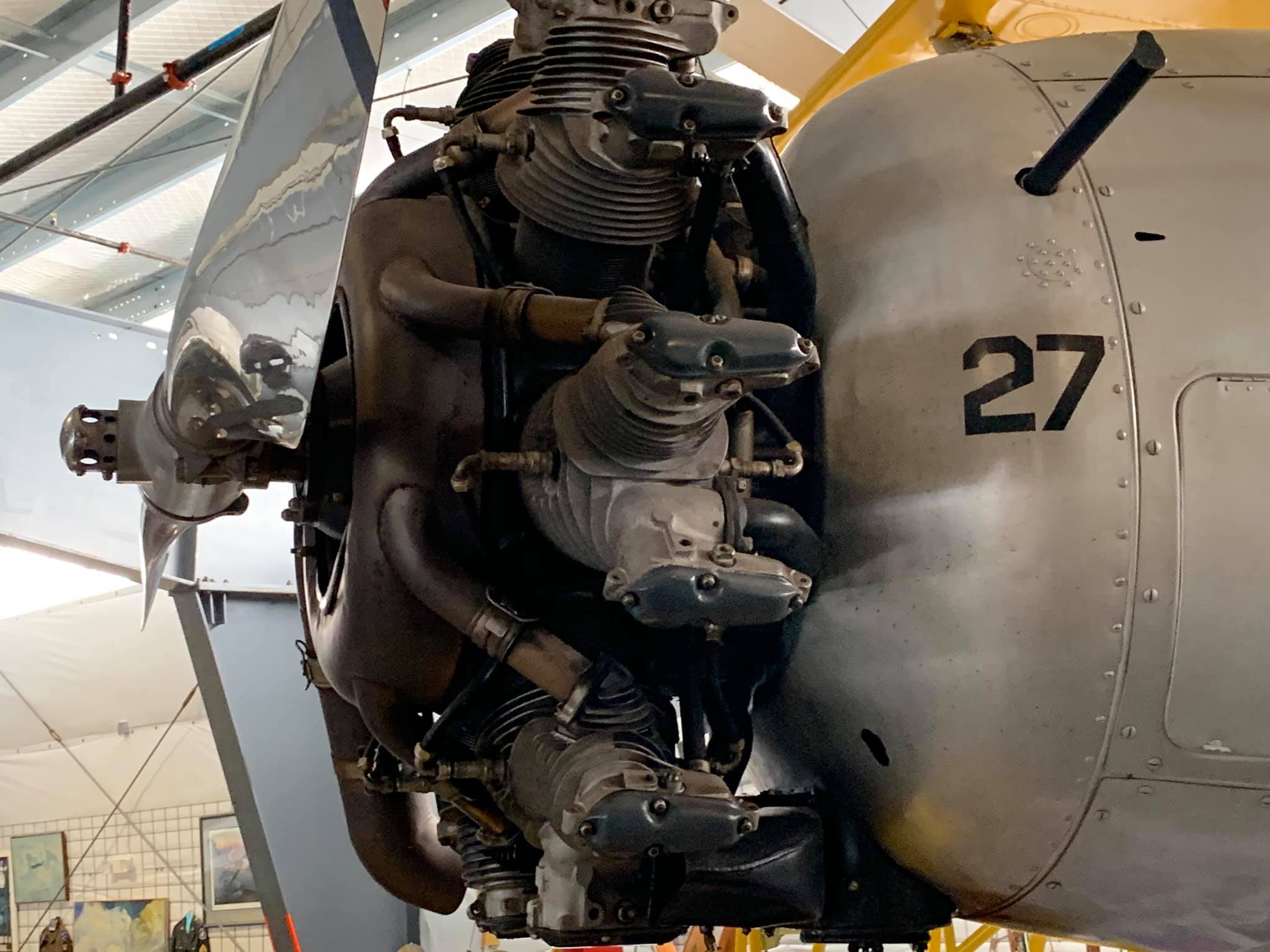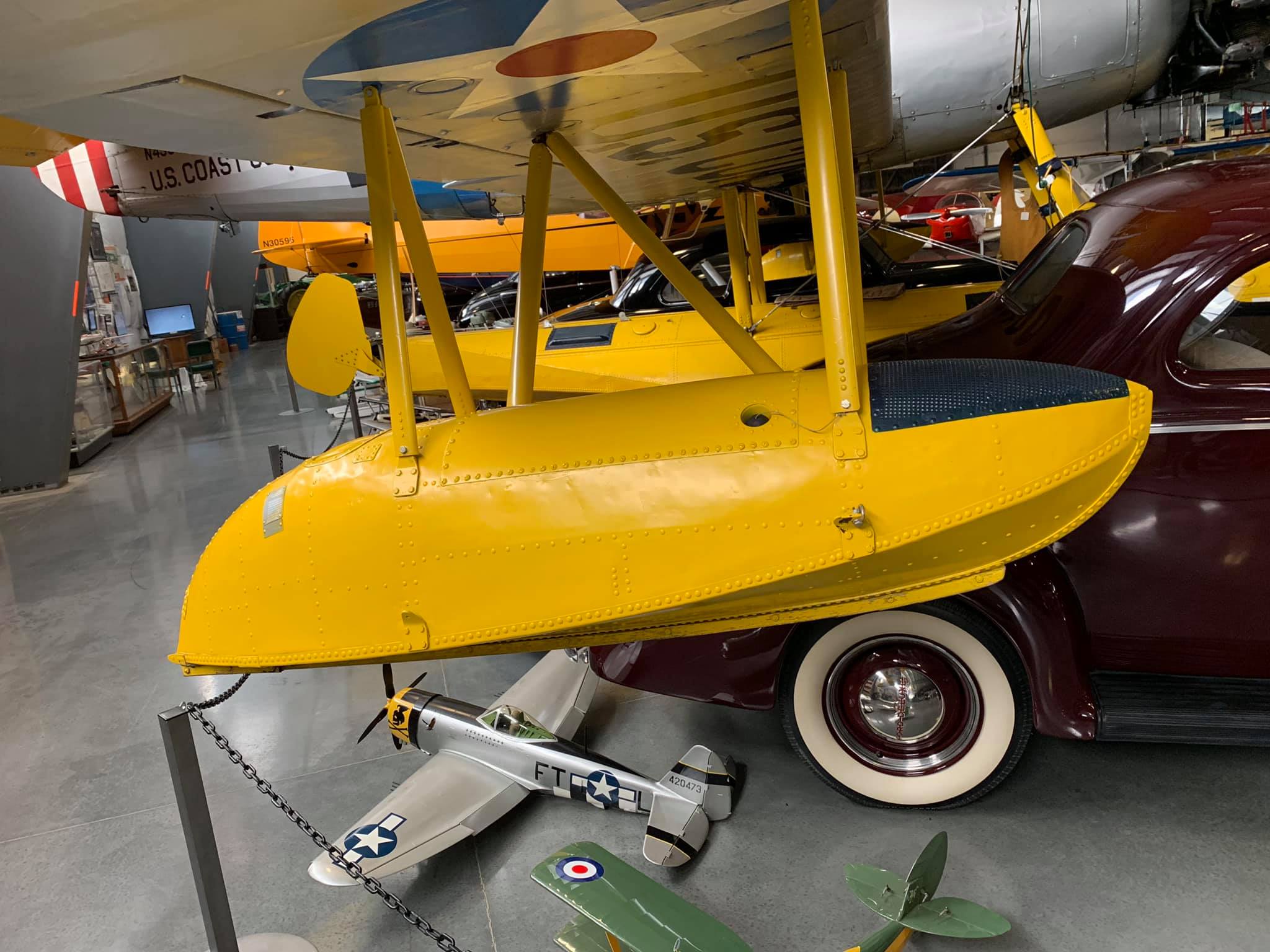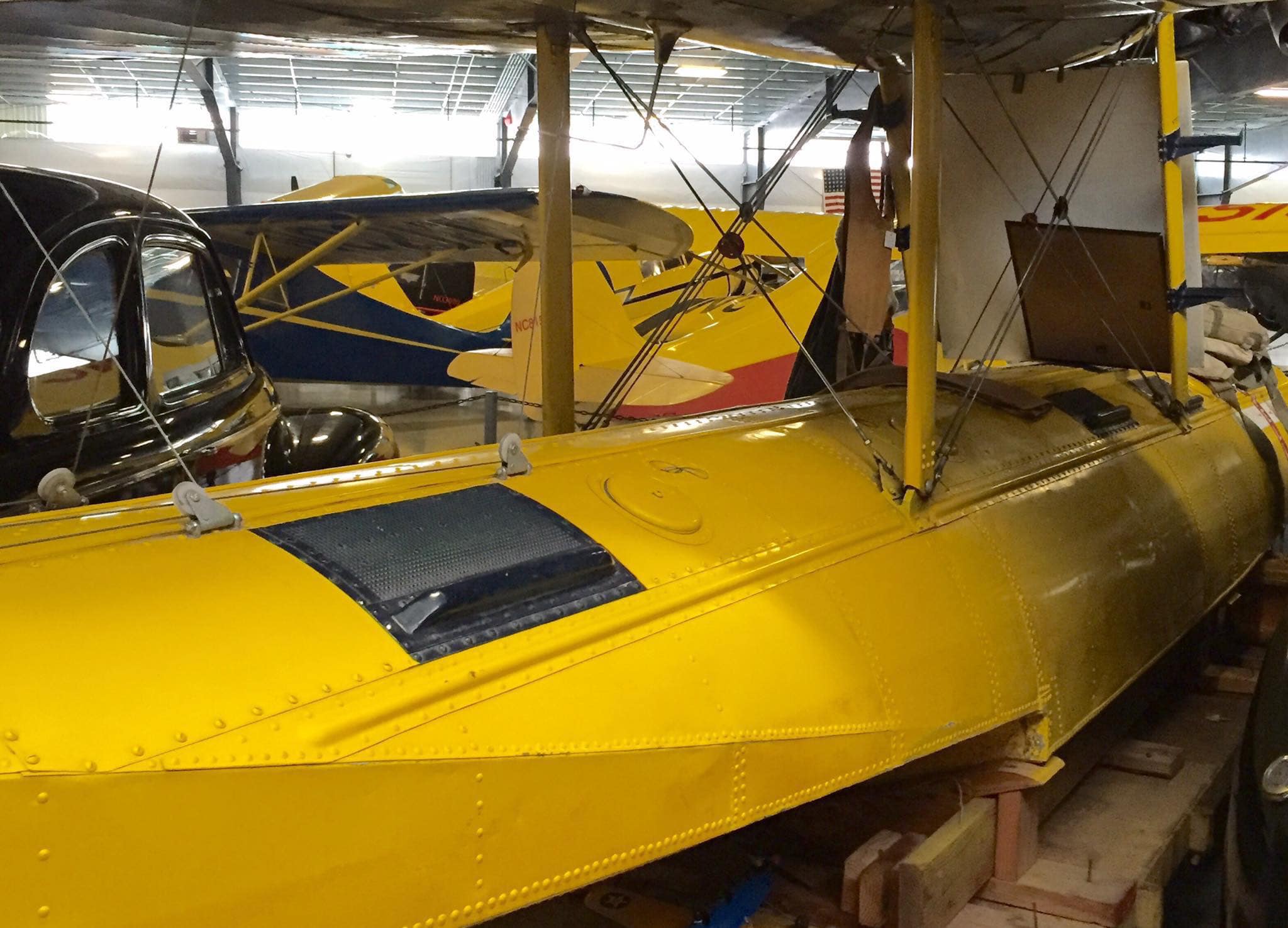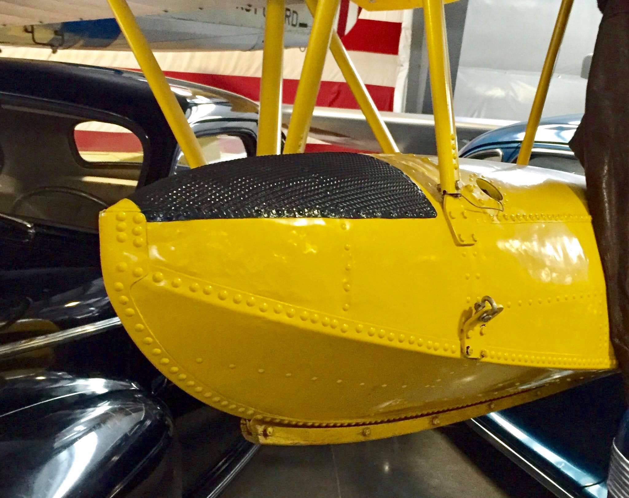 It was restored by high school teacher Bob van Vranken of Suisun, California, who took the aircraft on an over 6,000-mile flying tour of the U.S. in 1980. It was then acquired by Western Antique Aeroplane & Automobile Museum (WAAAM) founder Terry Brandt in the late 1980’s. The float equipment was acquired from Reggie Tufts, a retired U.S. Air Force mechanic from Sacramento, California. As has been common practice, the factory-equipped engine cowling has been removed (as mentioned below, this made for ease of maintenance, and the cowling did little to reduce drag). A listing of surviving examples of the aircraft type lists a number of them on display, and it appears there are at least a few flying; this one has flown since it has been located on the Columbia River. My photos of this aircraft are at WAAAM, located in Hood River, Oregon.