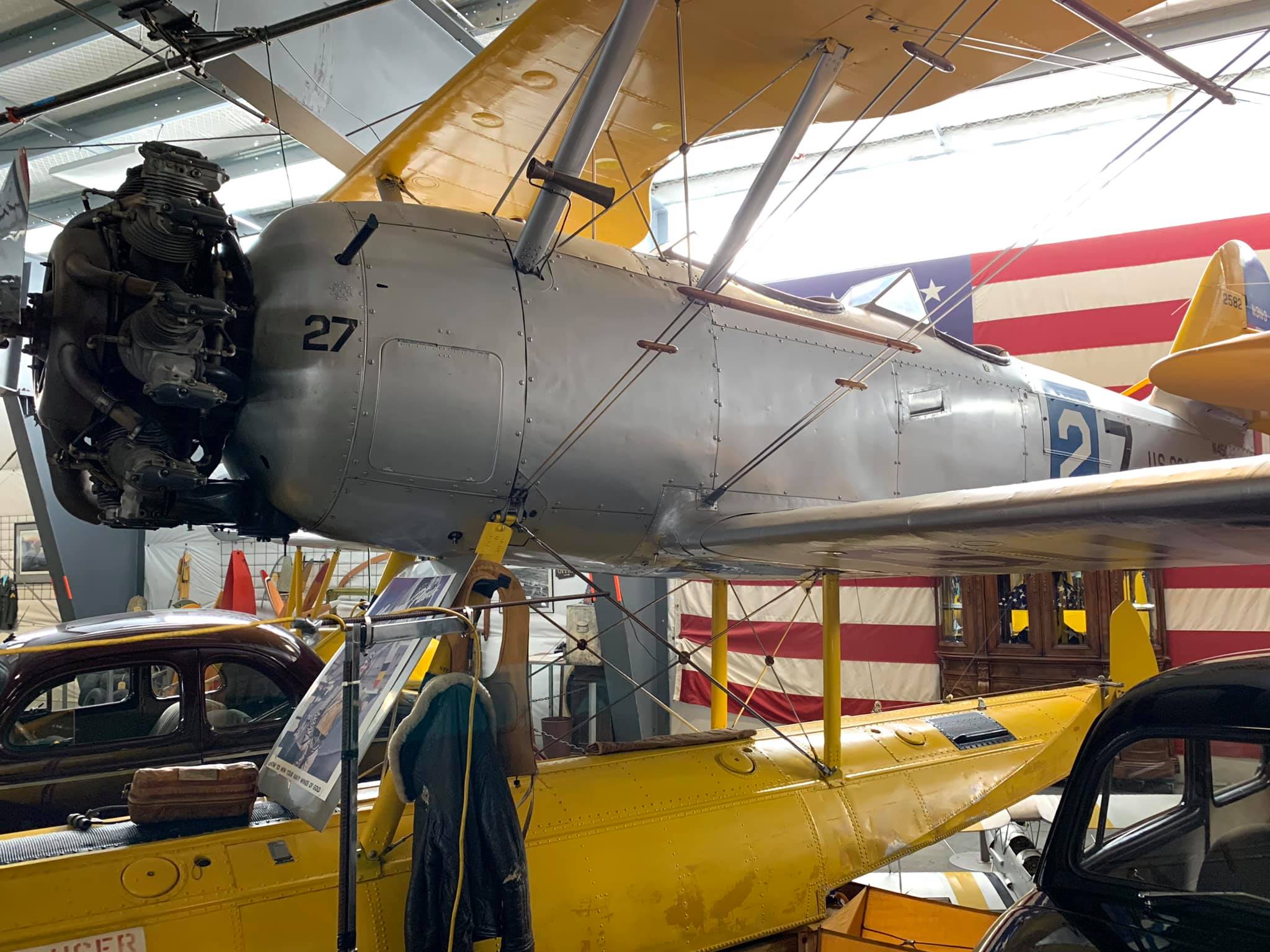 A tandem-seat primary trainer, the Canary was known as the “Yellow Peril” and by some accounts was due to its tendency to ground loop (the narrow landing gear stance of only 72 1/2 inches from the centerline of each tire left little in the way of lateral stability at higher touchdown speeds; in addition, taxiing required a series of s-turns due to the limited forward visibility); or by the fact that since 1917, U.S. Navy primary trainers were painted chrome yellow for maximum visibility (whereas the U.S. Army painted their primary trainer fuselages blue and the wings and tail surfaces chrome yellow); or simply the fact that pilots found training harrowing (and if the cadet failed to solo in the prescribed time, was in peril of not becoming an aviator).