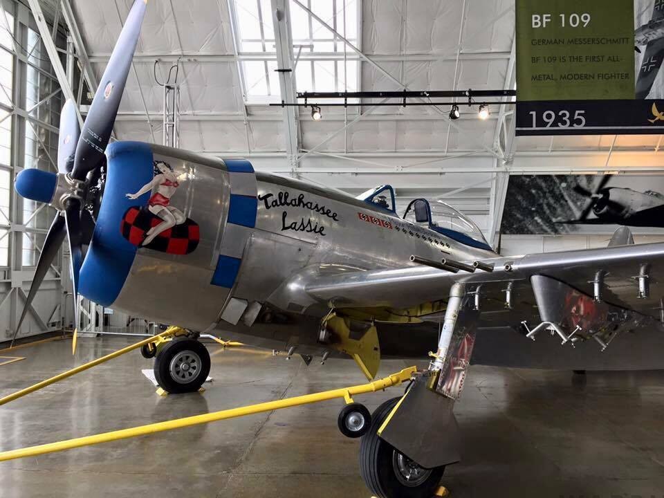 The museum had the Thunderbolt painted to represent P-47D-30-RA 44-33133, an aircraft flown by Seattle-born Capt. Ralph C. Jenkins who led the 510th Squadron, 405th Fighter Group of the 9th Air Force based in Christchurch, England. The fighter’s nose art, Tallahassee Lassie, was inspired by Jenkins’ wife Tiero (a native of Tallahassee, Florida) and the 510th FS’s “Willie the Wolf” unit patch. The red-encircled swastikas, of course, represent Jenkins’ aerial victories over Luftwaffe aircraft, whilst the others represent aircraft sitting on the ground which he destroyed with the fighter. Thankfully, Col. Jenkins survived the war and lived a long life. He died peacefully in his sleep aged 98 on May 10, 2017.