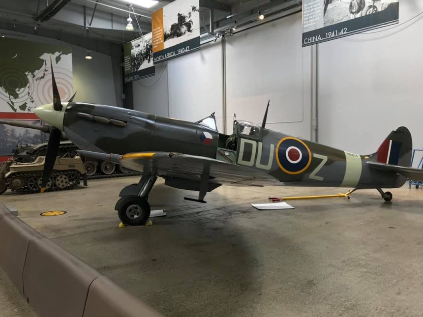 It was piloted by Squadron Leader Tomáš (aka Adolphe) Vybíral. His last mission in this aircraft was on May 14, 1943, when he led his squadron on a raid against German shipping at St. Peters Port, Guernsey, in the English Channel. His aircraft was hit by flak, narrowly missing him in the cockpit, but killing his wingman. Vybíral was able to fly back to base.