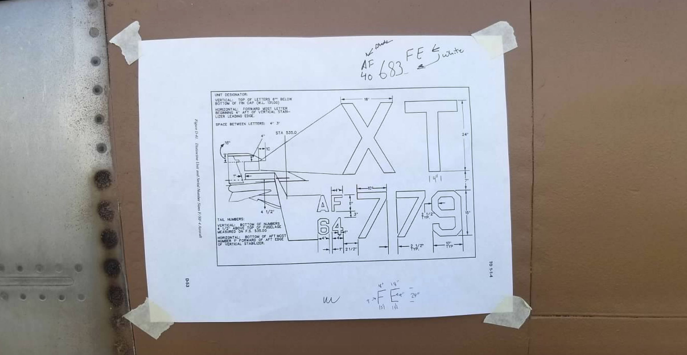 On a cold December day in 2010, I started posting to the Warbird Information Exchange (WIX) message board asking for support to repaint 64-0683 in her original Southeast Asia combat finish. The response was overwhelming; people from all over the US and abroad offered to dig into research on 64-0683’s history and the proper markings from her days in combat. It is a common trope that an aircraft restoration won’t be ready to fly until the amount of paperwork covering the work equal’s the aircraft’s actual weight; the same can be said of a static restoration! In addition, Rick Harris who works on the Collings Foundation’s active F-4 let me take numerous pictures of their airworthy aircraft to help get the markings and detailed stenciling recorded accurately. Unfortunately, we couldn’t find the appropriate Federal Standard (FS) paint colors, nor did we have the finances to afford aircraft-grade paint, so we were forced to make best efforts to match the colors available at a local hardware store.