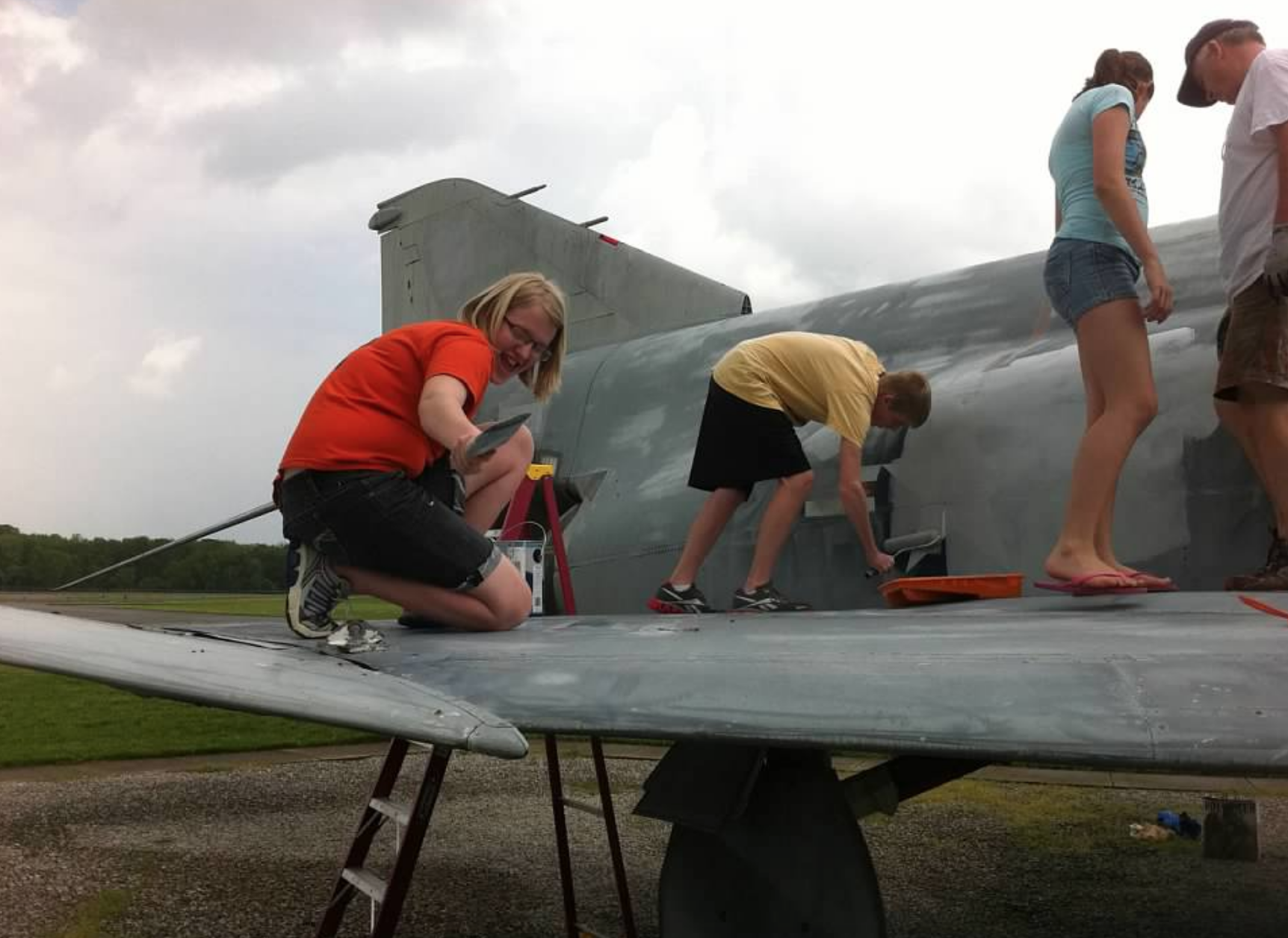 From there a team formed which included Terry Treneff (who helped move the aircraft to the airport, helped with research and created 64-0683 t-shirts), Michael Bates (research, paint and markings), Michael Keaser (has the tallest ladders in town!), Norman Green (no fear of heights when clambering up and painting the vertical stabilizer) and myself conducted a months-long effort to power-wash, sand, repaint and apply markings to 64-0683. Our efforts culminated with a formal unveiling on November 11th, 2011 with a Veterans Day ceremony with the Newark Heath Mayor and local newspaper staff in attendance. It was a proud day for our team as well as for 64-0683! Steve Beebe lent his support highlighting the aircraft’s restoration in magazine articles. 64-0683 was now known across the world, no doubt putting a smile on the faces of many former F-4 aircrew and others who served in Southeast Asia due to their being remembered at a small airport in central Ohio.