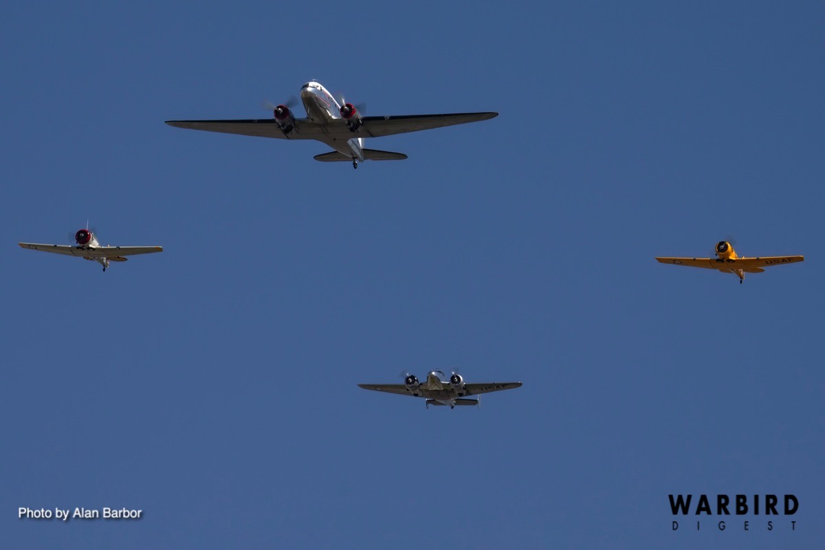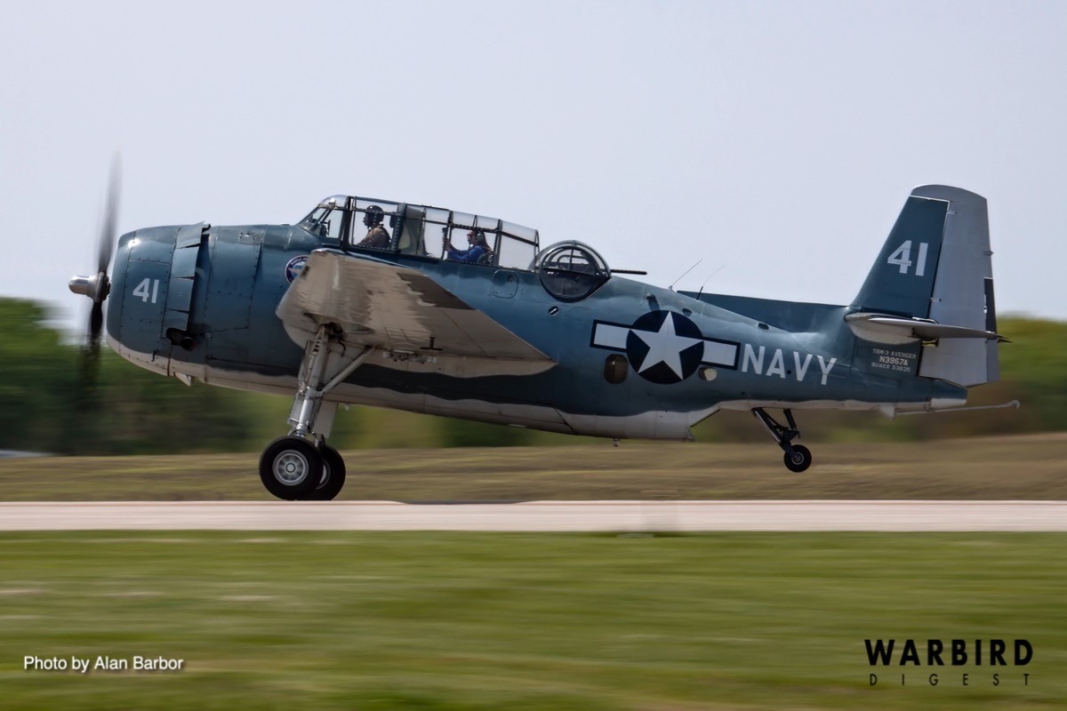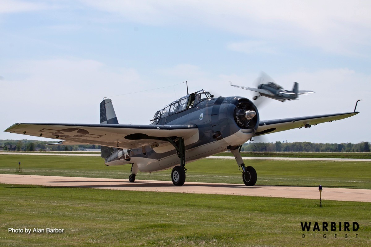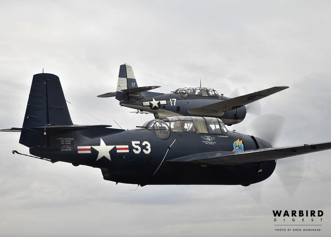 Taking part in the special flight were Gary Applebaum flying the Wings of the North Air Museum’s TBM-3E (Bu.53818), J.P. Mellor flying the CAF Missouri Wing’s TBM-3E (Bu.53353), Rick Siegfried flying Tim Savage’s TBM-3E (Bu.91521), and Casey Roszell flying John Mosley’s TBM-3E (Bu.91726).