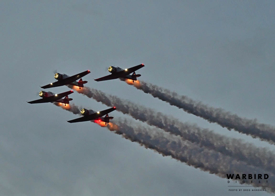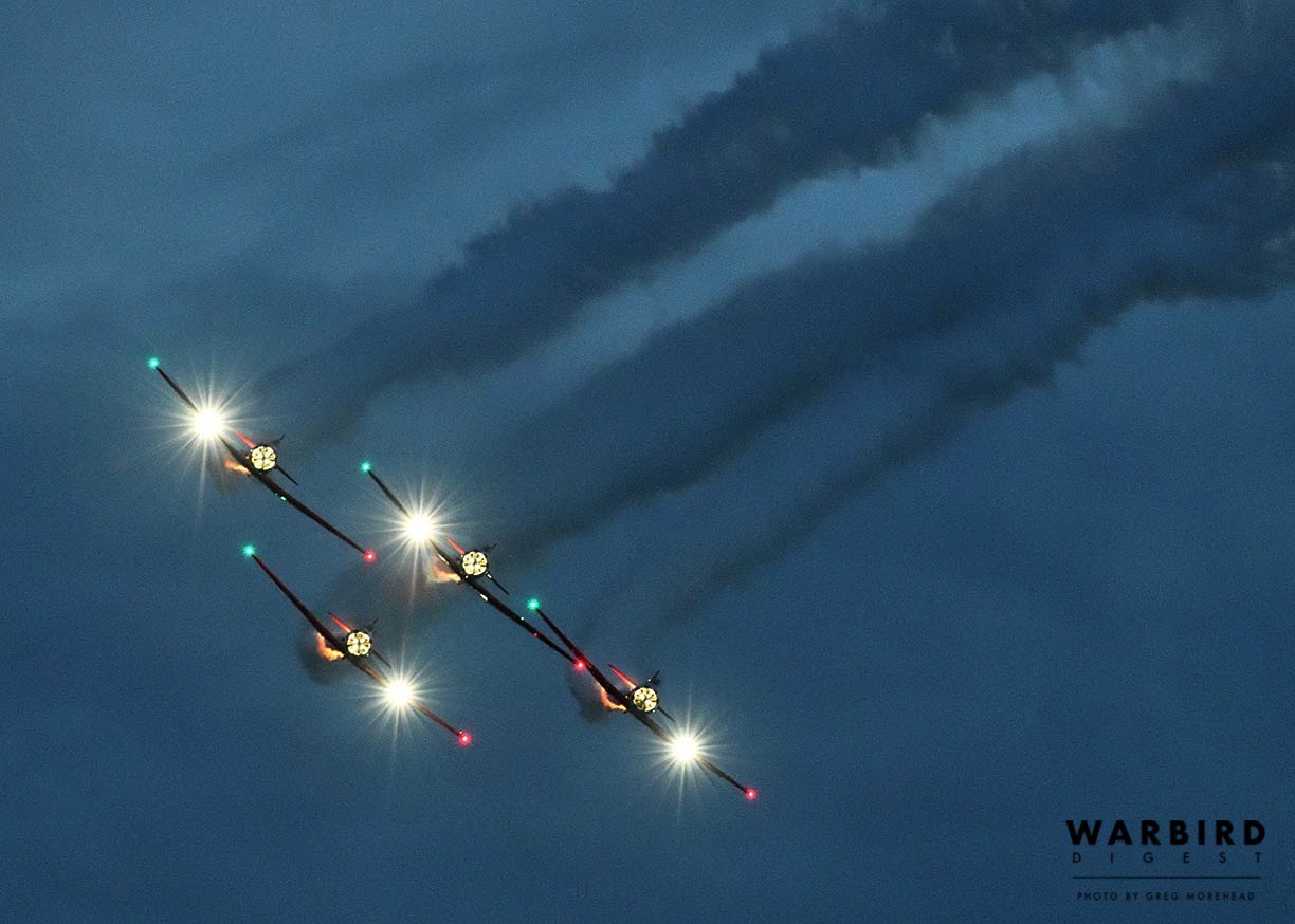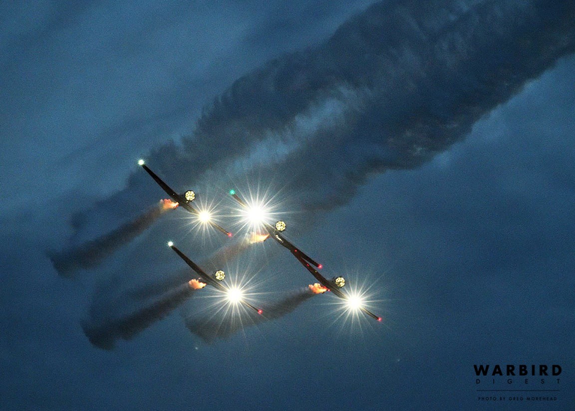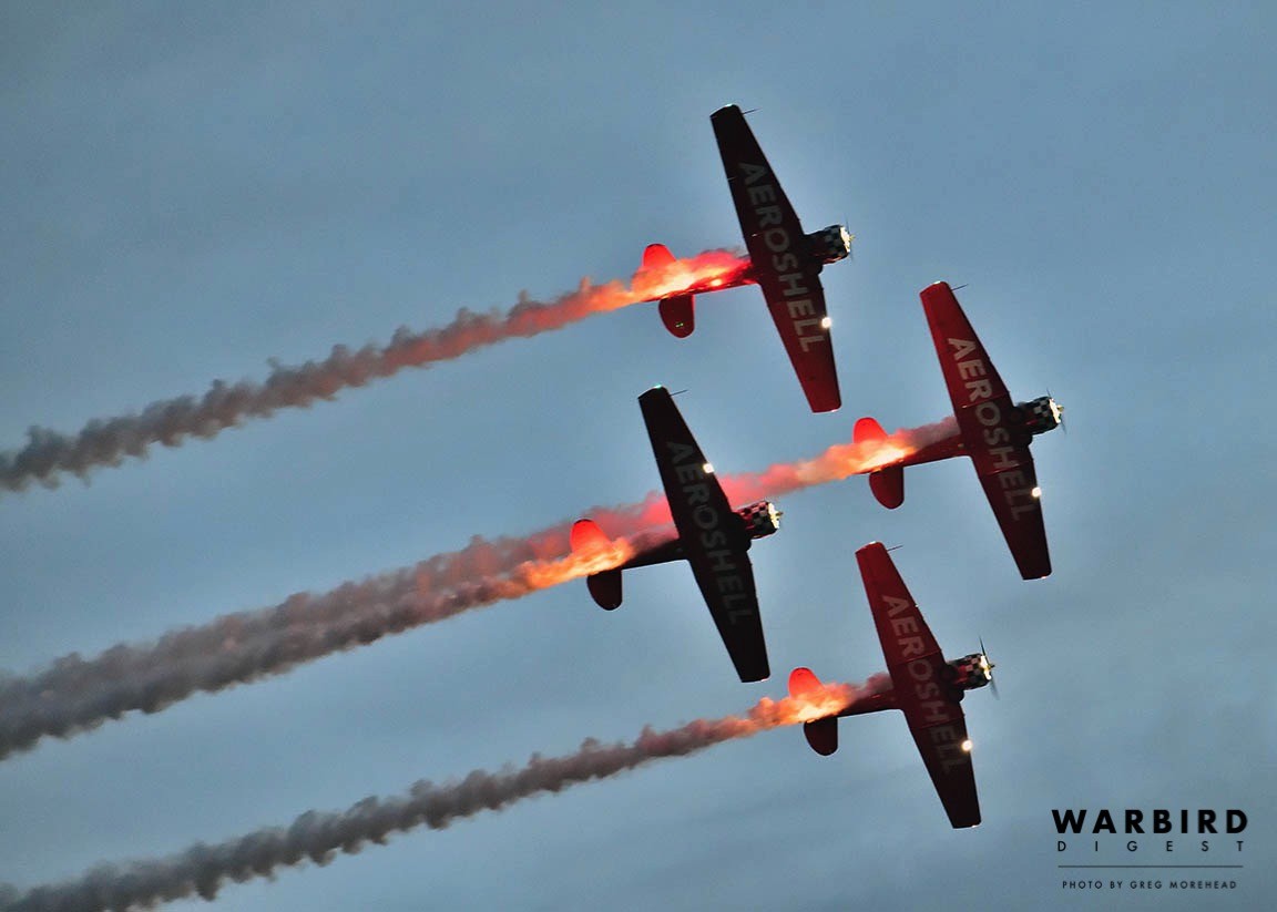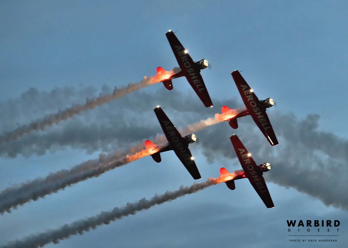 New to the annual event, the world-renowned Aeroshell Aerobatic Team also took part. Many people in this predominantly rural region of Illinois have likely never seen such an amazing display of airmanship that these four pilots can achieve in their AT-6 Texans. It is fair to claim that the Aeroshell team’s evening performance was the highlight of the weekend and a memory many will recall vividly for decades to come… “Do you remember the year the Aeroshell Aerobatic Team came to the airport and flew in formation at night?” Those Illinois “Yankees” who had the opportunity to meet and speak with anyone from the team were certainly taken with the southern accent and charm, which team members are known for. They are simply some of the nicest, most welcoming pilots ever to promote aviation. Jimmy Fordham, one of the team members, has a particular fondness for humor, as came to light on the Friday while he was working on his T-6. A fellow from one of the TBMs noticed Fordham toiling away, and offered his services to the tall slot pilot. But Jimmy just smiled and held up a handful of zip ties while playfully quipping, “No thanks. I think I have it covered!”