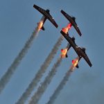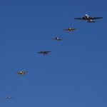 Sadly, rain forced the cancellation of flying events on the Saturday, which was painful for many because the Salute to Veterans has become one of the best opportunities for many to thank those in their community who have served in the Armed Forces. Although the big Veterans Parade didn’t take place, there was a moving military ceremony accompanied by a missing man formation which was perfectly timed to a haunting rendition of the Last Post, over the loudspeakers. Four TBMs started their big R-2600 radial engines, unfolded their wings, and taxied out under light drizzle to take off and join up for the iconic representation of the men who aren’t coming home – those who paid the ultimate price for our freedom.
