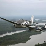 Those who consume content from the online streaming service Hulu might have enjoyed the recent six-part miniseries Catch 22, based upon Joseph Heller’s magnificent 1961 novel describing the experiences of a fictional B-25 Mitchell unit fighting in the Italian campaign. One of the Mitchell’s which played a role in this dark comedy, the Tri-State Warbird Museum‘s B-25J attended the TBM Reunion. While she has long-flown as Axis Nightmare, she became Yankee Doodle for Catch-22, and still bears these markings. The paint is a water soluble finish, and likely won’t last much longer, so those who had the chance to see Yankee Doodle in Peru were lucky to have an up-close look at the plane made famous by Hollywood.