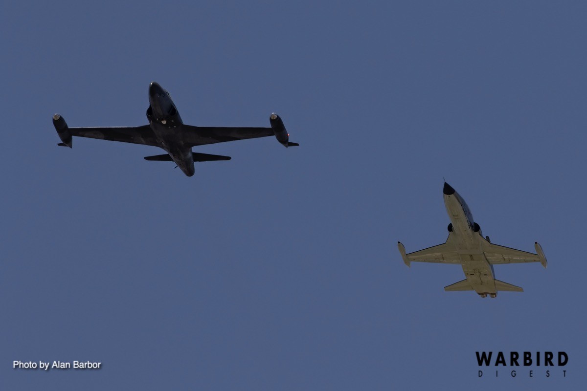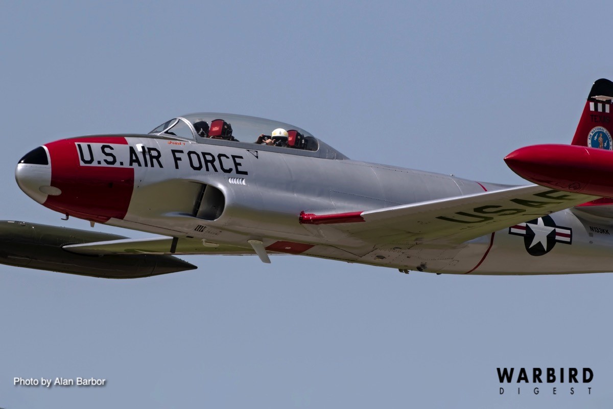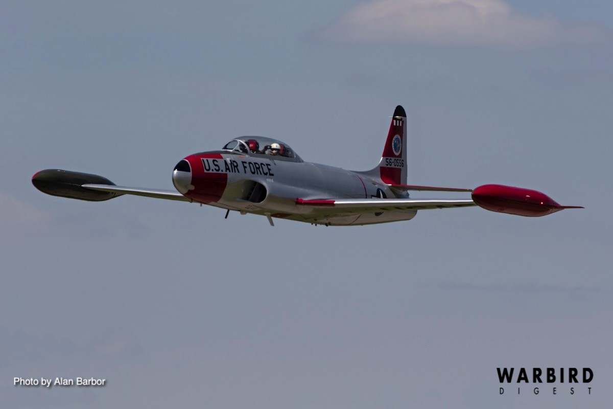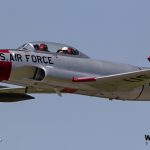 Three of the jet warbirds landed on the field, including two T-33s and a T-37, while Jeff Kaney flew the F-5 out of Rockford due to the minimum runway length his fast-mover requires. Tweet pilot Carl Schwerman recalled launching on Friday with Paul Keppeler in his T-33. The two joined up for some flying, then when Kaney arrived in the F-5, Schwerman bowed out and let the two speedsters do some formation work before landing.