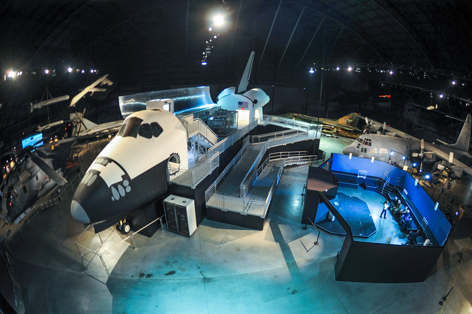 The Space Shuttle trainer and STEM exhibit as they currently exist at the National Museum of the US Air Force. The entire display will be moving into the new fourth hangar in the coming months. (photo via NMUSAF)