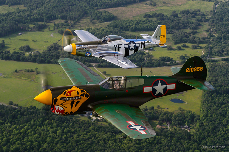 Currently, the fleet consists twelve beautifully restored warbirds: B-25J Mitchell Betty’s Dream, P-51D Mustang Dakota Kid II, a P-40K Warhawk, FG-1D Corsair Kathleen, P-51D Mustang Little Horse, an FM-2P Wildcat, a TBM-3E Avenger, a Harvard Mk.IV, an OY-1 Sentinel, C-53 Skytrooper The Duchess of Dakota, a P-40E Warhawk and an A6M2 Model 21 Zero.