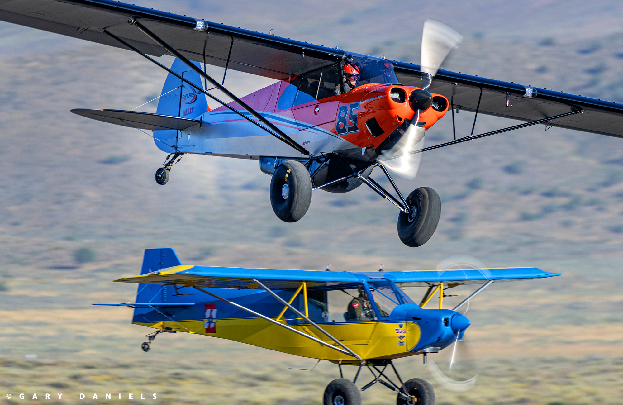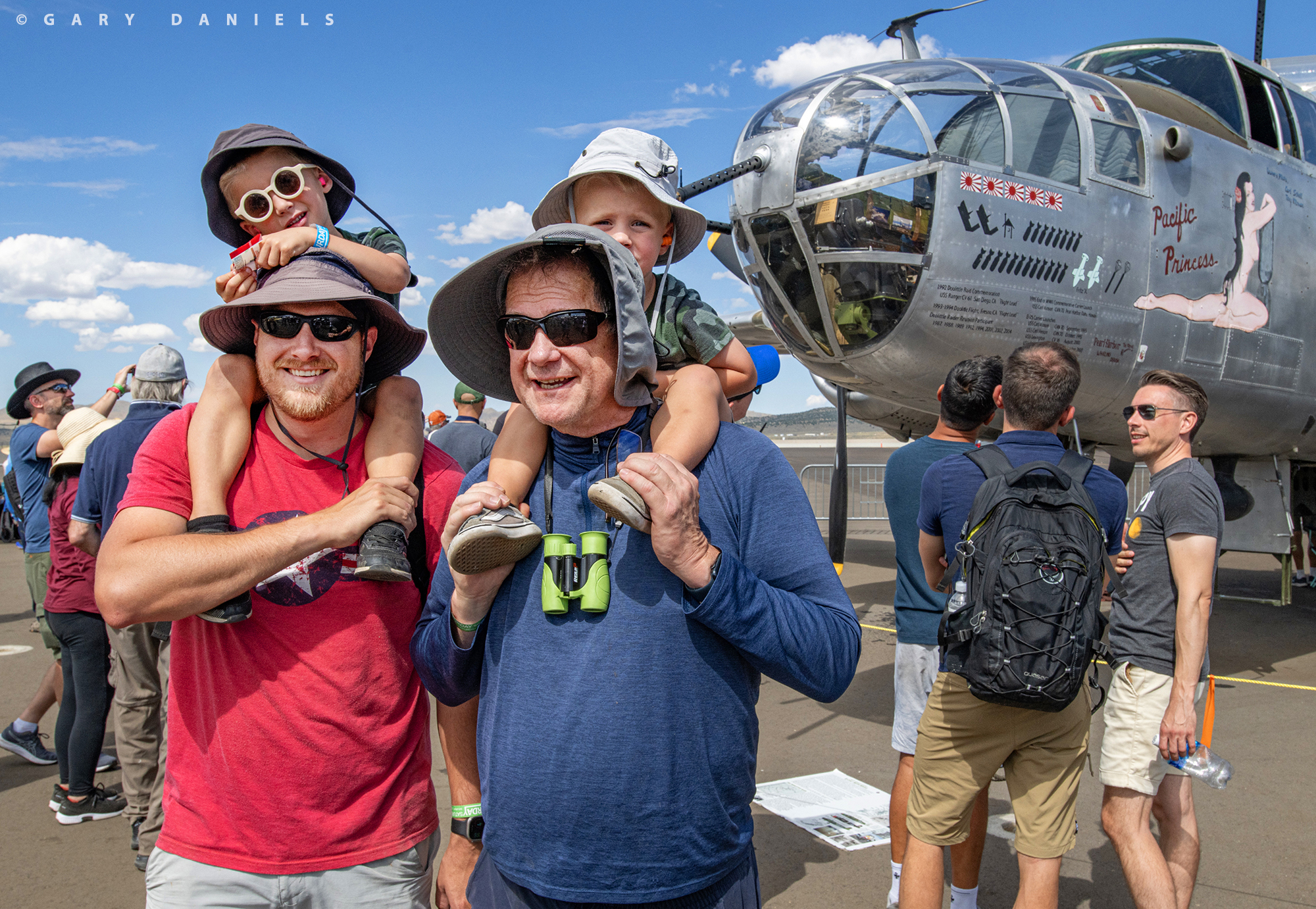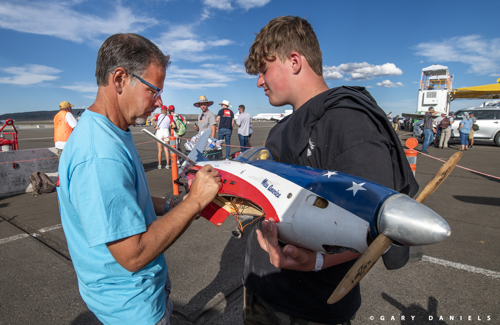 Laden with 25 pounds of camera gear, I certainly put my steps in each day. My days started at sunrise and ended after dark. Like a wide-eyed child trying to take it all in, I explored from one end of the expansive airport to the other, spending a considerable amount of time in all the class pit areas. I had heard the phrase ‘September Family’ from several people and had first seen it in the press release about the ending of the race at Reno. It is in the pit areas that I began to understand what this phrase meant. The ‘pits’ are concentrated mostly on the west side of the field, with the Jet Class and STOL pits on the east side of the grandstands. Whether in the F1 hangar, or in the open-air Jet, Unlimited, T-6, Sport, or STOL class pits areas, I gradually became aware of a feeling that I couldn’t quite put my finger on, but I knew it was special. Each of the pit areas were frenetic with activity: teams working hard to ready their aircraft for the various races of the day, panels off, wrenches turning, parts being replaced, surfaces wiped down, and aircraft being pushed out to the tarmac for engine runs. Within each of the pits, I heard laughter and bantering. These folks were working hard and having a great time while doing so. I saw family members present in the pits, children darting about, wives preparing lunch, friends dropping by, and hugging each other with that hug you give to a good friend you haven’t seen in a while. I began to realize that this is the “September Family” I have heard about, that wonderful family that all these people have become a part of by coming to Reno for years or even decades.
