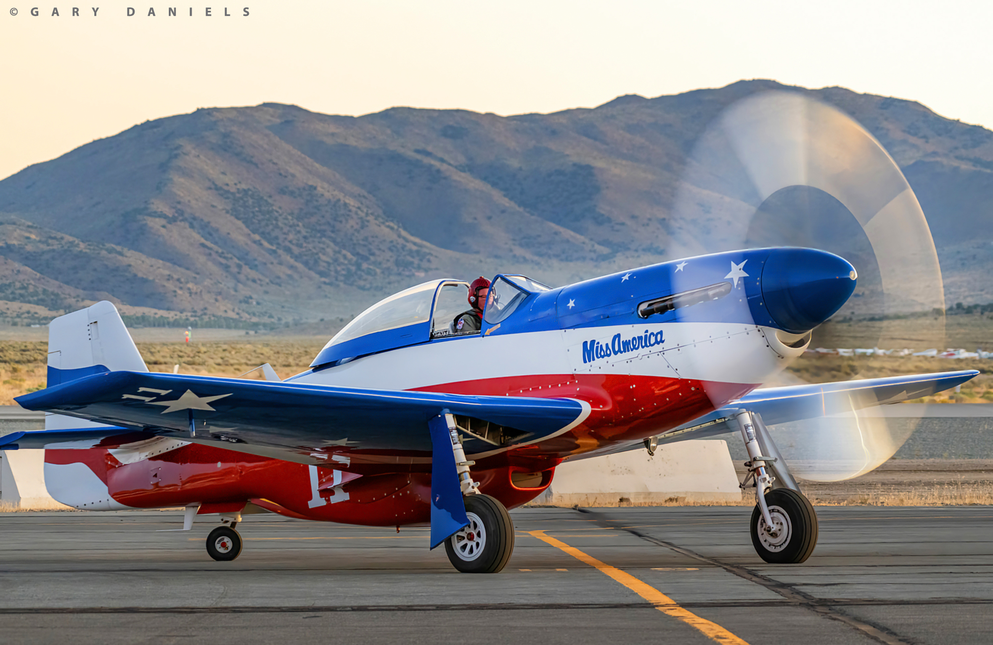 There were four aircraft at Reno that did not come to race, just to wow the crowds and participate in the Final Flag at Reno. Warren Pietsch brought his stunning P-51C Thunderbird. Throughout the week, Bernie Vasquez would lift off in Jimmy Stewart’s old ride and thrill the audience. Also present was Bob Hoover’s P-51D Ol Yeller, the Planes of Fame P-51D Wee Willy II, and the recently restored P-47D Thunderbolt Bonnie. For the opening ceremonies on Saturday morning, a missing man formation was flown with Thunderbird, Ol Yeller, Vick Benzing’s P-51D Plum Crazy, and Wee Willy II. A very special tribute indeed.