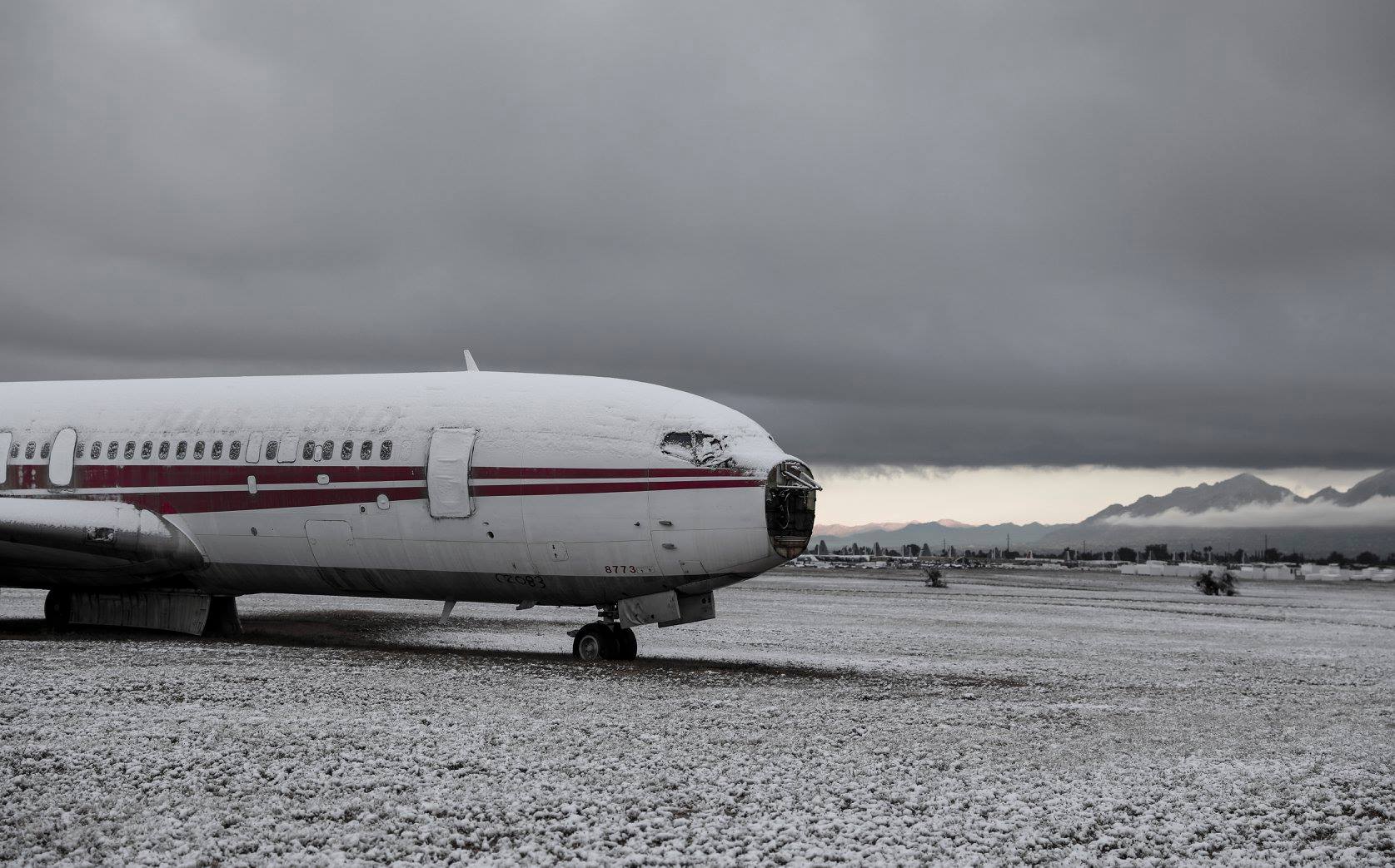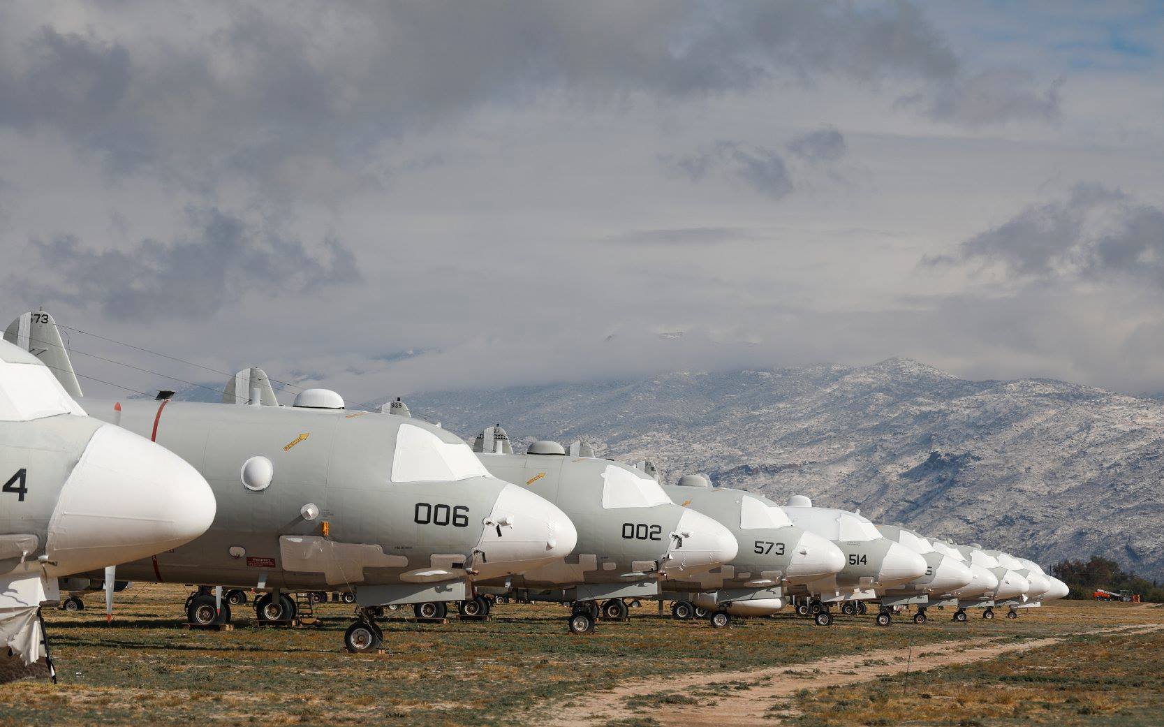 A nice view of the snow-covered hills which look down on Davis-Monthan AFB. Some of the T-37 fleet sit in the foreground, although the snow seems to have sublimed from the airframes. (photo via 309th AMARG)