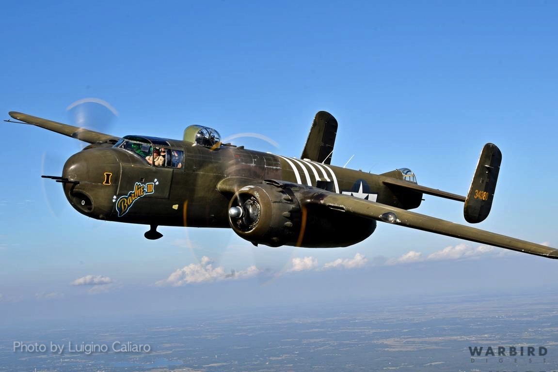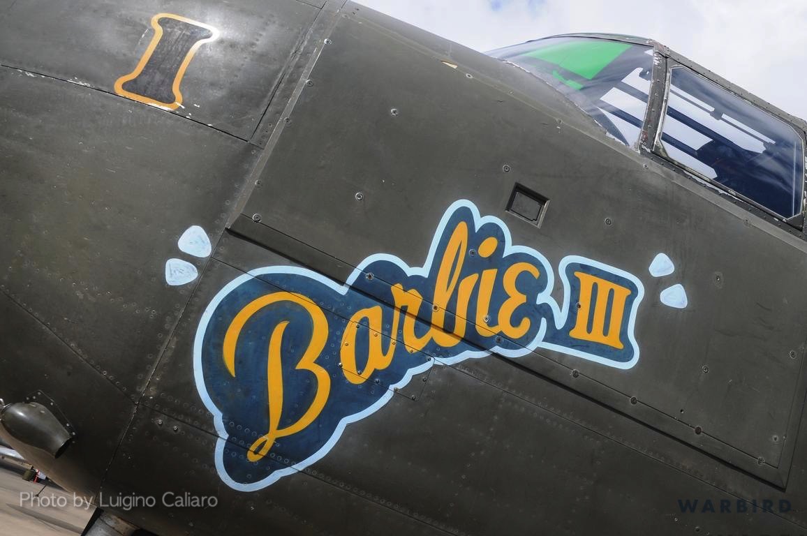 When the aircraft emerged from the restoration it was wearing the markings of B-25H USAAF #43-4380, Barbie III, as it appeared in service with the 1st Air Commando Group (ACG) while based at Hailakanidi Field, India, part of the China-Burma-India Theater, in 1944. This aircraft was the personal mount of the group commander Lieutenant Colonel Robert “R.T.” Smith, one of the first pilots to serve in the American Volunteer Group. In June 2009, the bomber was acquired by History Flight Inc., which used the aircraft for numerous promotional tours and participated in numerous air shows in the U.S. before it was sold to its current owner, Cavanaugh Flight Museum in Addison, Texas.