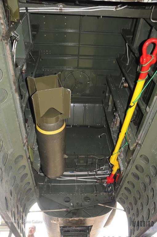 The subsequent H-model was a notable improvement over the G, particularly in terms of defensive armament which included a tail turret and waist guns. In order to make room for the latter, the top turret was moved to the area just behind the flight deck. The H was also fitted with the lighter and more efficient T13E1 cannon, which resulted in the variant becoming a single-pilot aircraft as the co-pilot station was refitted for the navigator, who also served as the cannon operator. The first 300 B-25Hs were equipped with a quartet of 50-caliber machine guns in the nose as well as an additional pair in a dual blister pack on the right side of the fuselage. The subsequent 700 examples featured identical blister packs on the left side. When that octet of forward firing 50s were combined with the pair in the top turret, the H-model became the most formidable strafer in the Army Air Forces. If the heavy hitting firepower of these ten guns were not enough, the B-25H could also carry eight 5-inch rockets under the wings.