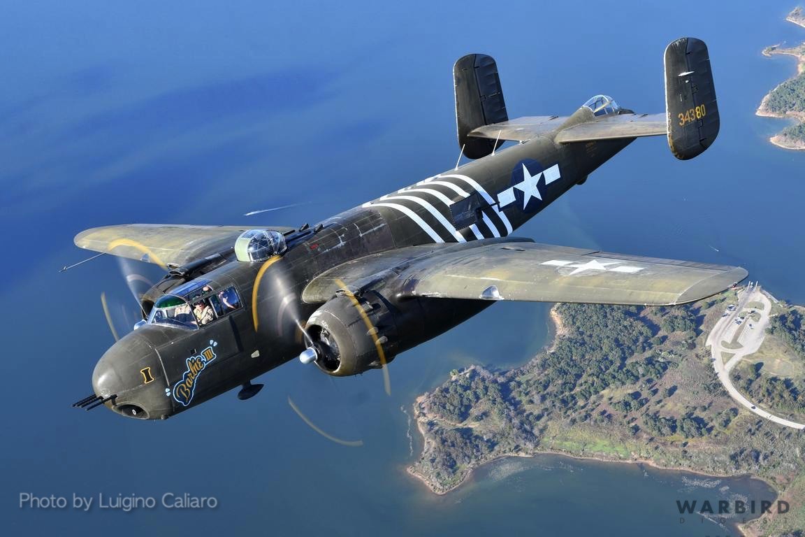 Designed in 1939 by the North American Aviation Company (NAA) and baptized in honor of Major Gen. William “Billy” Mitchell (1879-1936), one of the first and most prominent supporters of American air power, the B-25 production run ran from 1940 and 1945. The two facilities, that produced the B-25, Inglewood, California and Kansas City, Kansas, turned out over 10,000 aircraft.