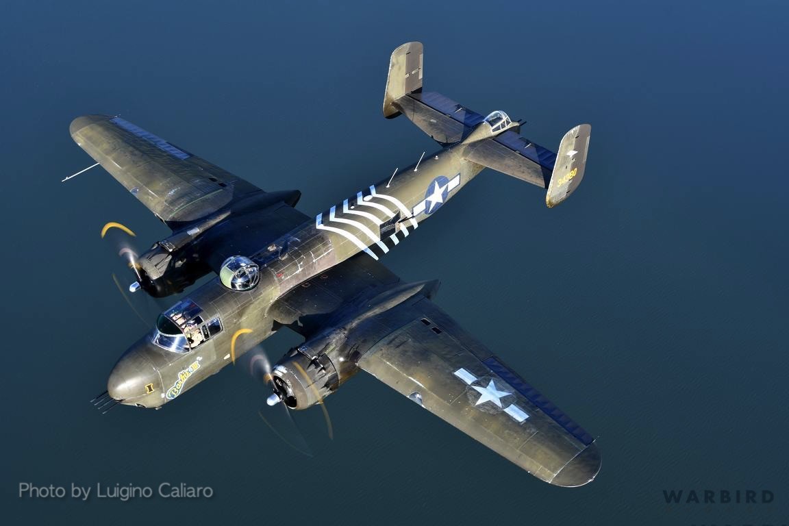 Of the 1,000 B-25Hs produced by NAA, only four survive today, and only one, B-25H-1-NA, USAAF #43-4106, the second H-model produced, remains airworthy. Completed at the Inglewood factory on August 25, 1943, the aircraft as delivered to Eglin Field, Florida where it was used for stress and armament tests. It was declared surplus on December 6, 1945, and relegated to storage at Walnut Ridge, Arkansas.