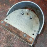 One of the rudder pedal boot assemblies following its removal from the main assembly. It is upside down in this image, and you can clearly see the master brake cylinder to the left. (image via Wings Museum)