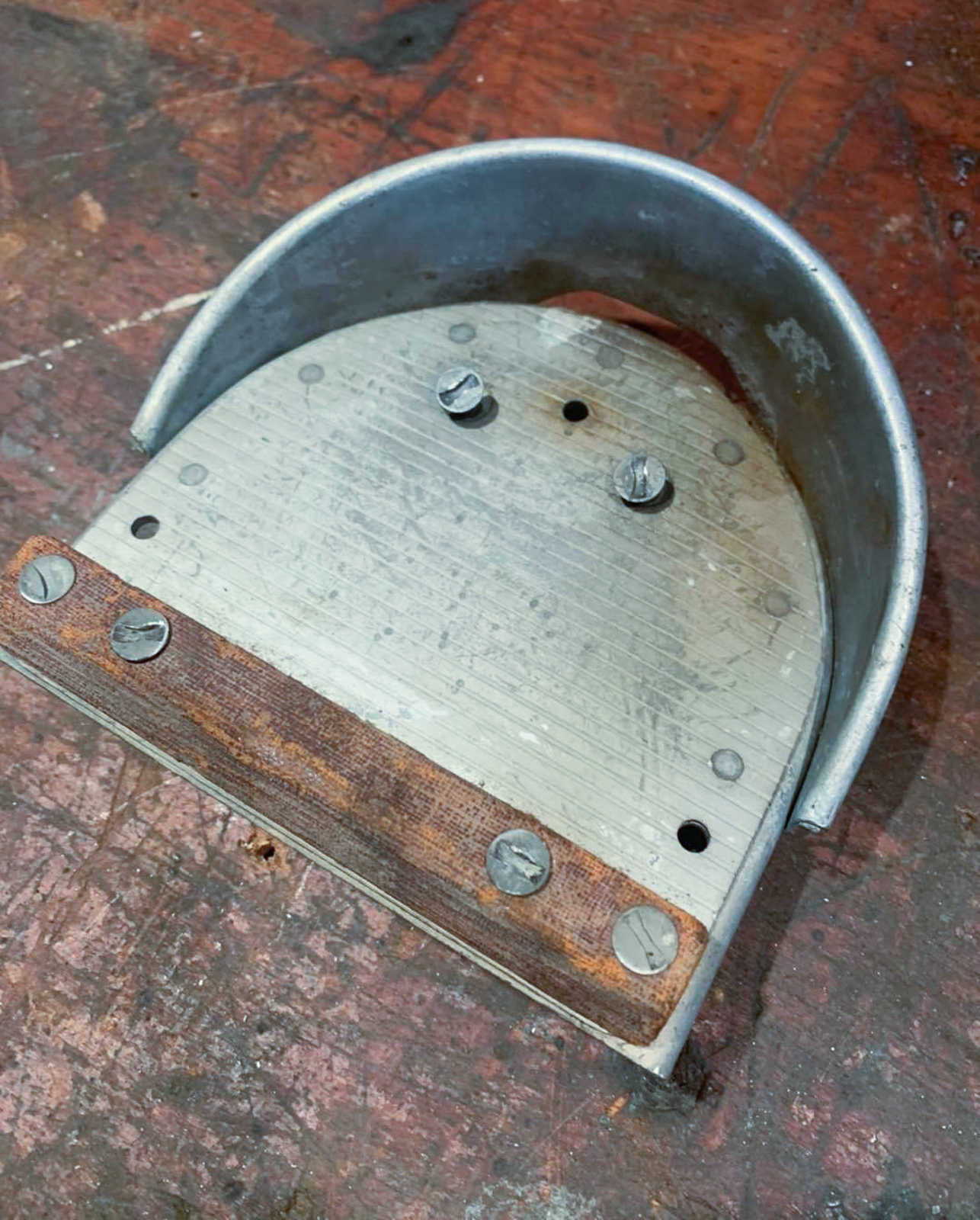 One of the rudder pedal boot assemblies going back together following its restoration. Note that the boot assembly has merely been conserved, rather than restored. (image via Wings Museum)