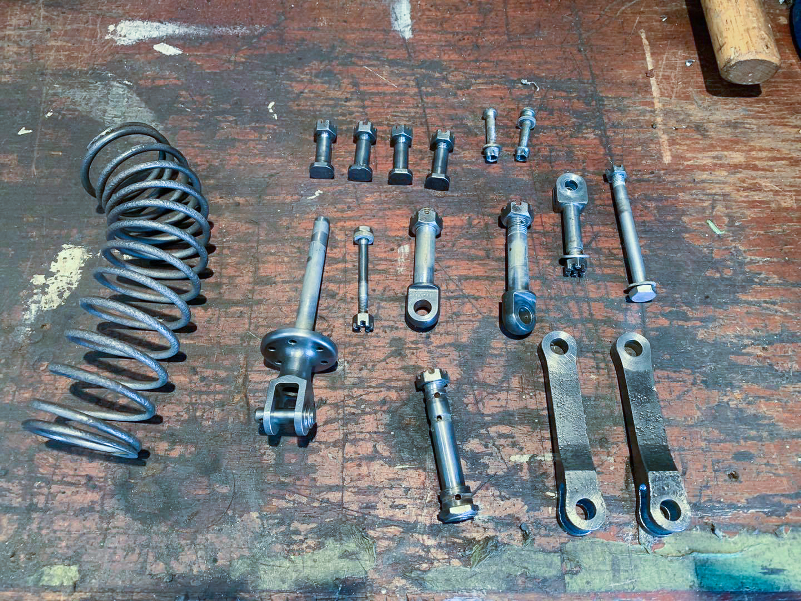 Components from the rudder pedal assembly following cleaning. (image via Wings Museum)