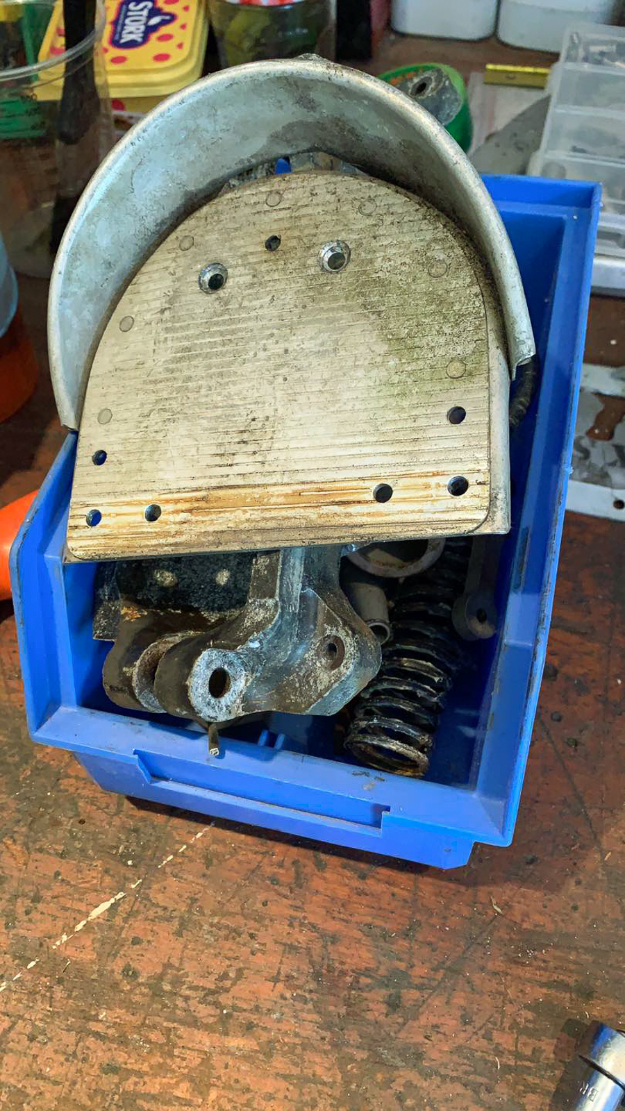 The rudder pedal assembly part way through the disassembly process. (image via Wings Museum)