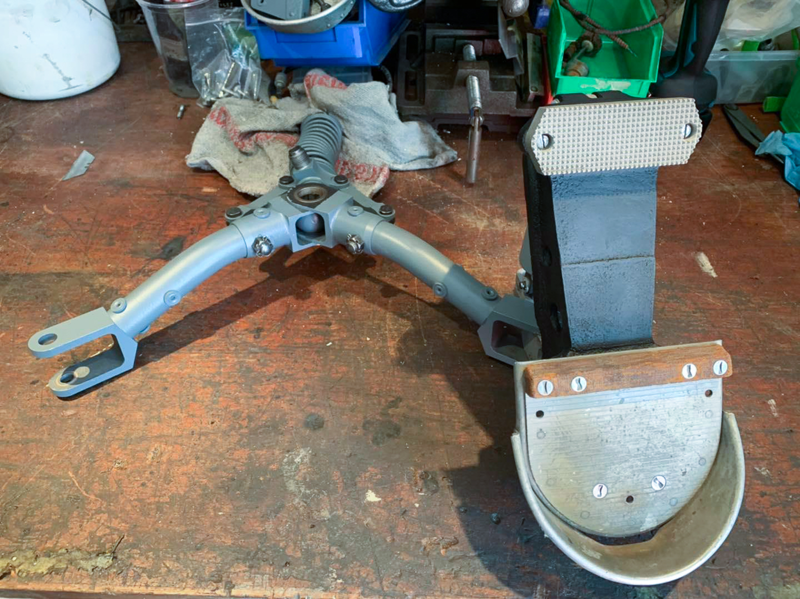 The rudder pedal pinion assembly being prepped for painting. (image via Wings Museum)