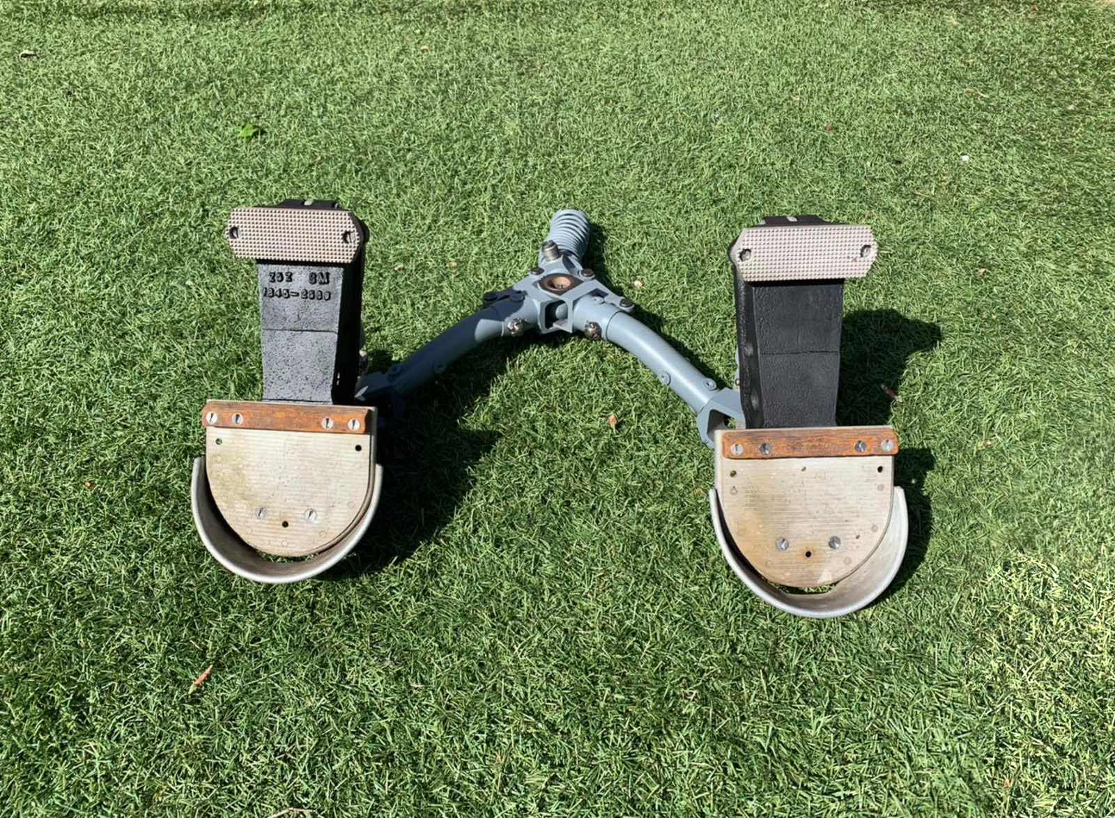 Another view of the rudder pedal mounting assembly following its removal from the cockpit. (image via Wings Museum)