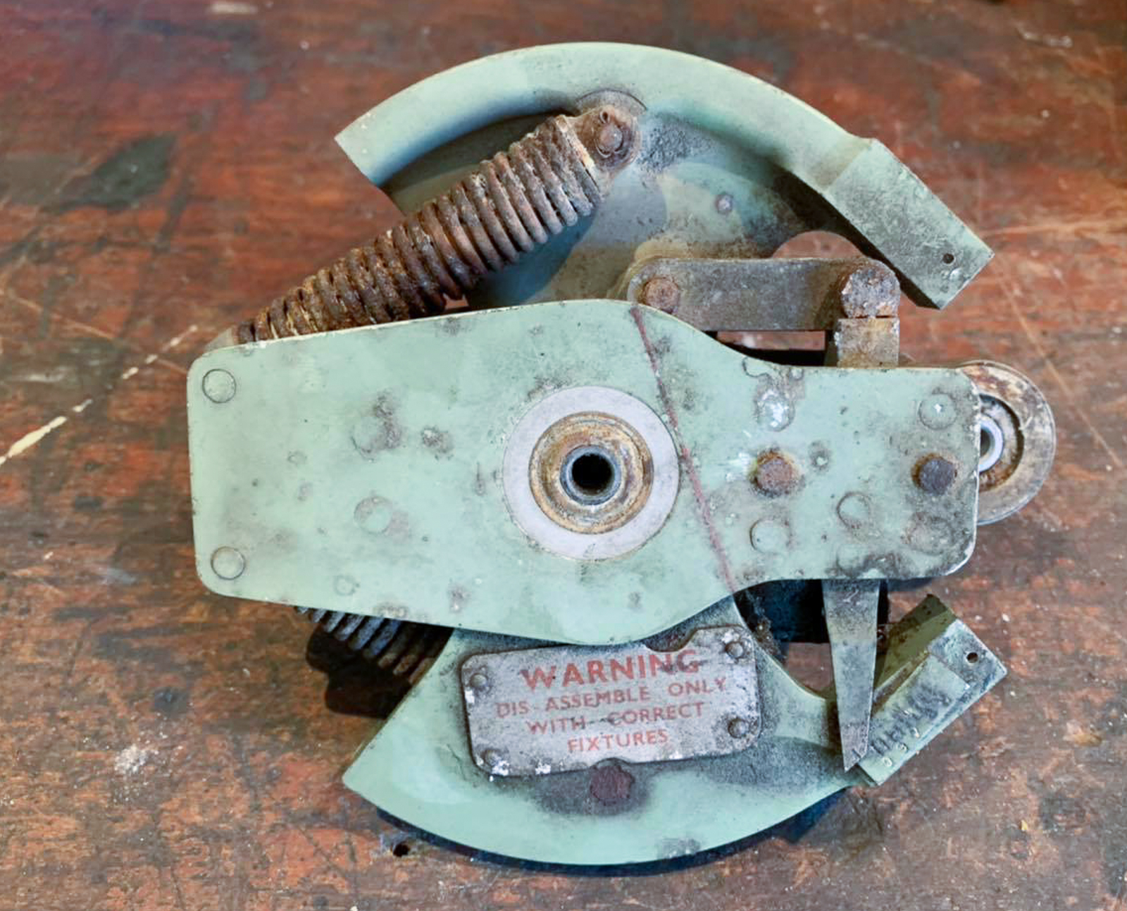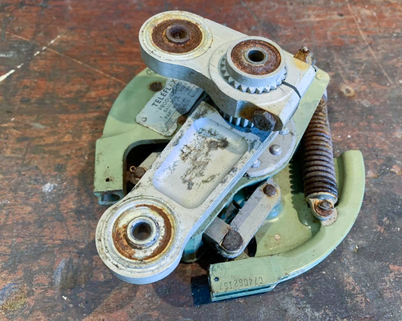The aileron cable tension regulator following its removal from the Kestrel’s cockpit. (image via Wings Museum)