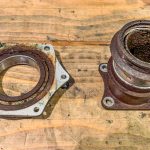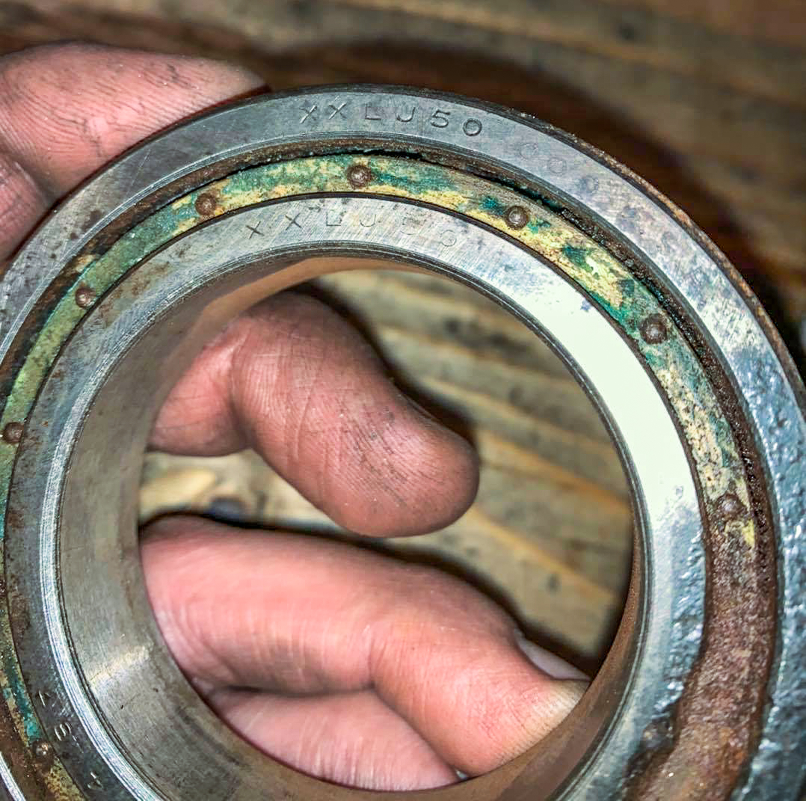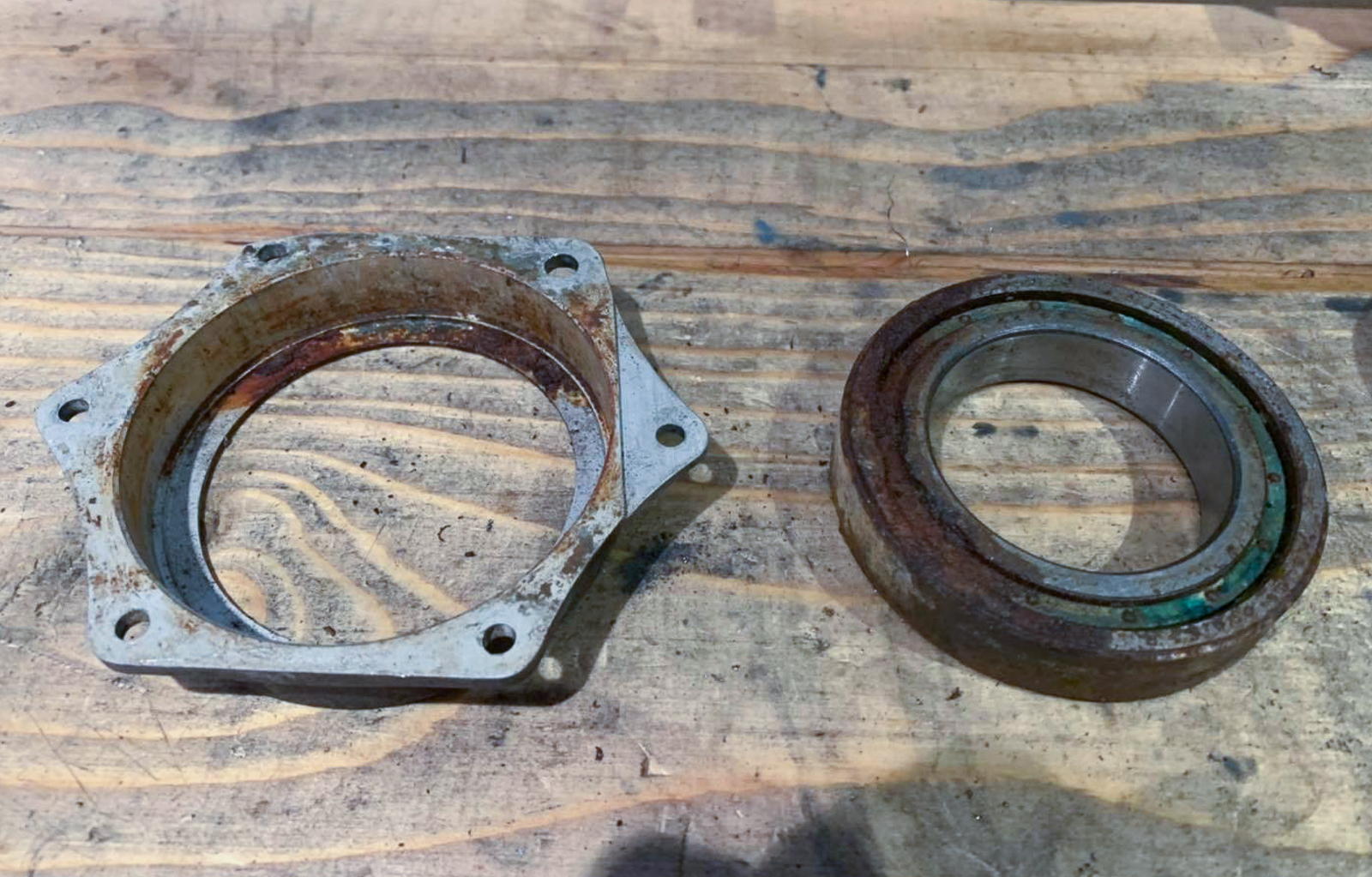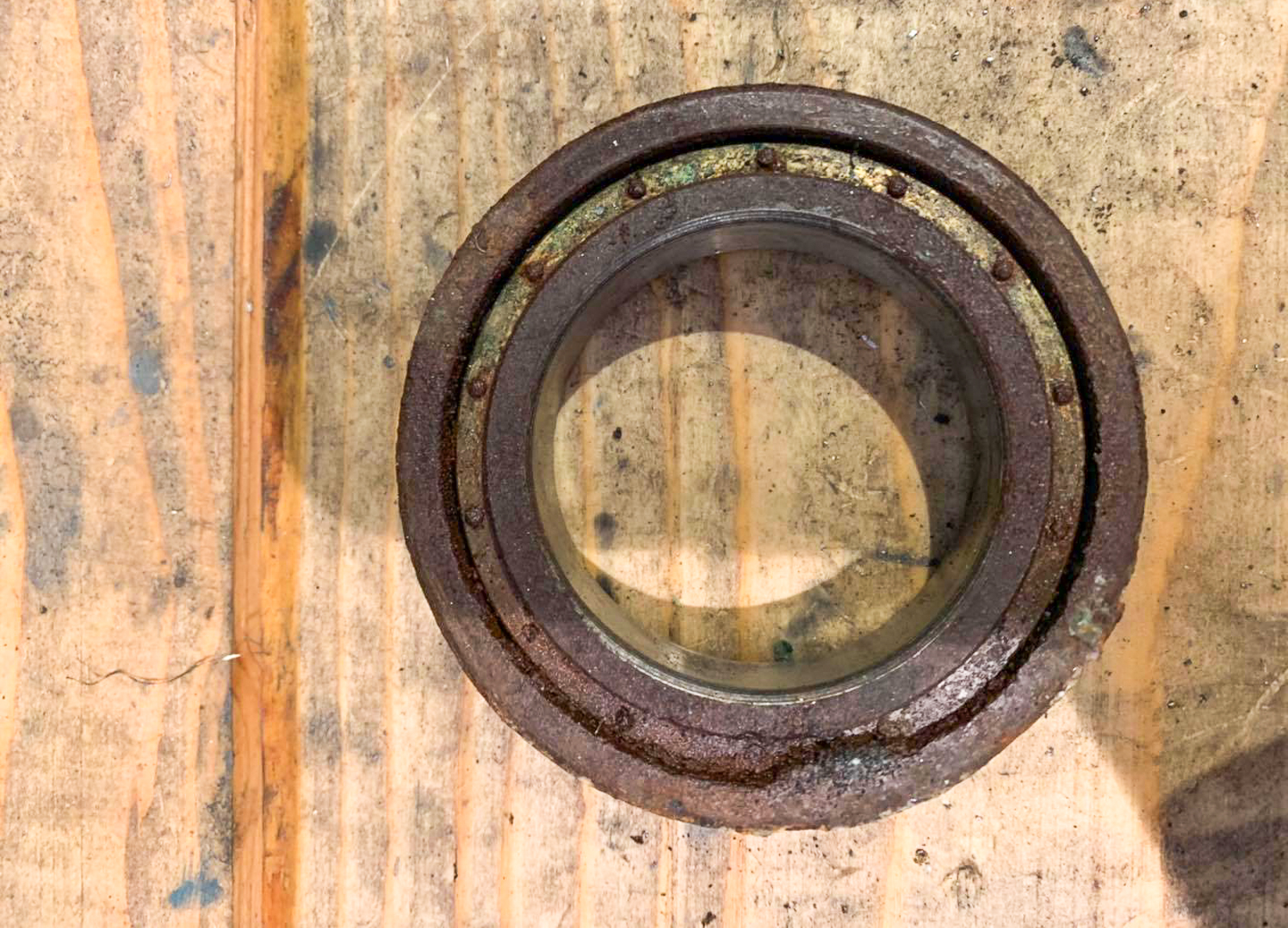The seized bearing from the elevator torque tube mount. This had seized, and took a great deal of effort to remove. (image via Wings Museum)